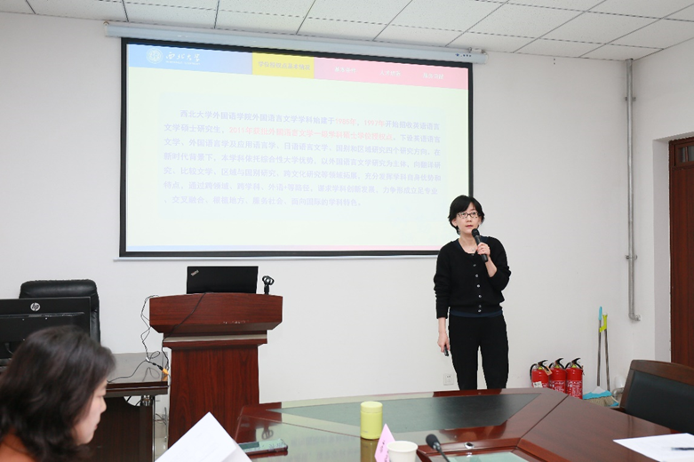 Firstly, the panel of expert assessors visited the classrooms to observe the courses for the English Language and Literature and Japanese Language and Literature majors for students enrolled in 2023. Subsequently, they proceeded to the conference room to commence the assessment work. During the meeting, Cao Ruonan extended a warm welcome to the visiting expert assessors on behalf of the school. She provided a detailed report on the basic construction, academic characteristics, and talent cultivation of Master’s degree authorization Point in Foreign Language and Literature in our school. She expressed her hope that this evaluation would serve as an opportunity to propel the development of our school’s Foreign Language and Literature to a higher level.
