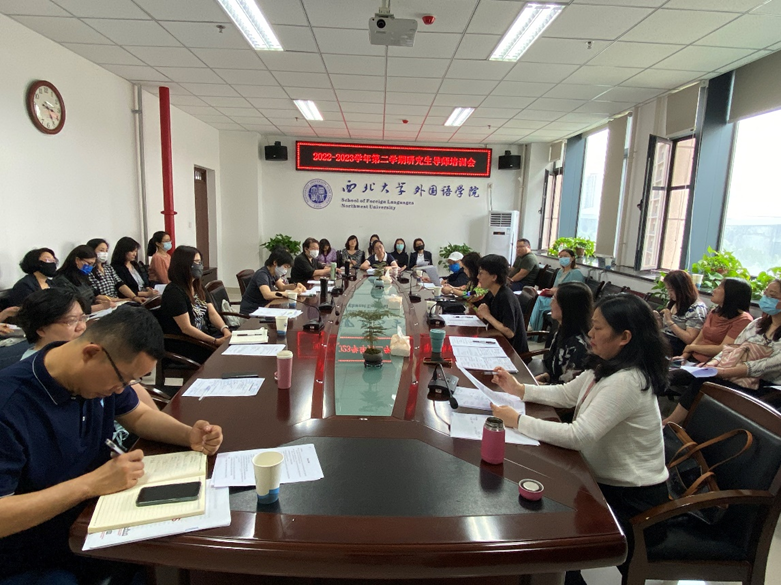To further strengthen the construction of our graduate supervisor team and comprehensively improve their level, the school held a new semester graduate supervisor training session on the afternoon of May 17th in the fifth-floor conference room of the West Building. All the master’s supervisors attended the meeting, which was chaired by Dean Cao Ruonan.