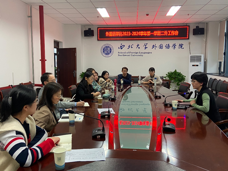 To further strengthen the construction of the second foreign language curriculum in our school and enhance the research and professional abilities of second foreign language teachers, a teacher’s work meeting was held in the conference room on the fifth floor of the West Building on October 18th. The meeting was chaired by Dean Cao Ruonan.