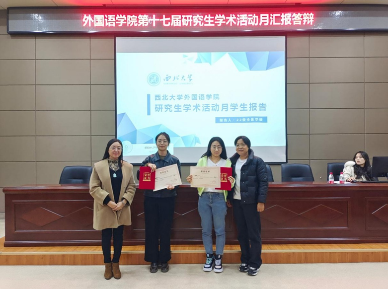 In this activity, based on the proportion of participants, there were first, second, and third prizes, totaling six winners. After the preliminary scoring of the papers and combining the scores from the on-site defense, the committee members provided comprehensive ratings to select the winning students for this activity. Ultimately, Ren Wanbo enrolled in 2022 who majors in Foreign Linguistics and Applied Linguistics won the first prize. Yang Jingjing who majors in Japanese Language and Literature, and Zhang Yin who majors in Foreign Linguistics and Applied Linguistics won the second prize. Liang Jiaxin, Zhong Xiaomeng, and Lai Xiaoqian who major in Foreign Linguistics and Applied Linguistics received the third prize. Finally, attending mentors awarded the winning students, and a group photo of all teachers and students was taken to commemorate the successful completion of this activity!