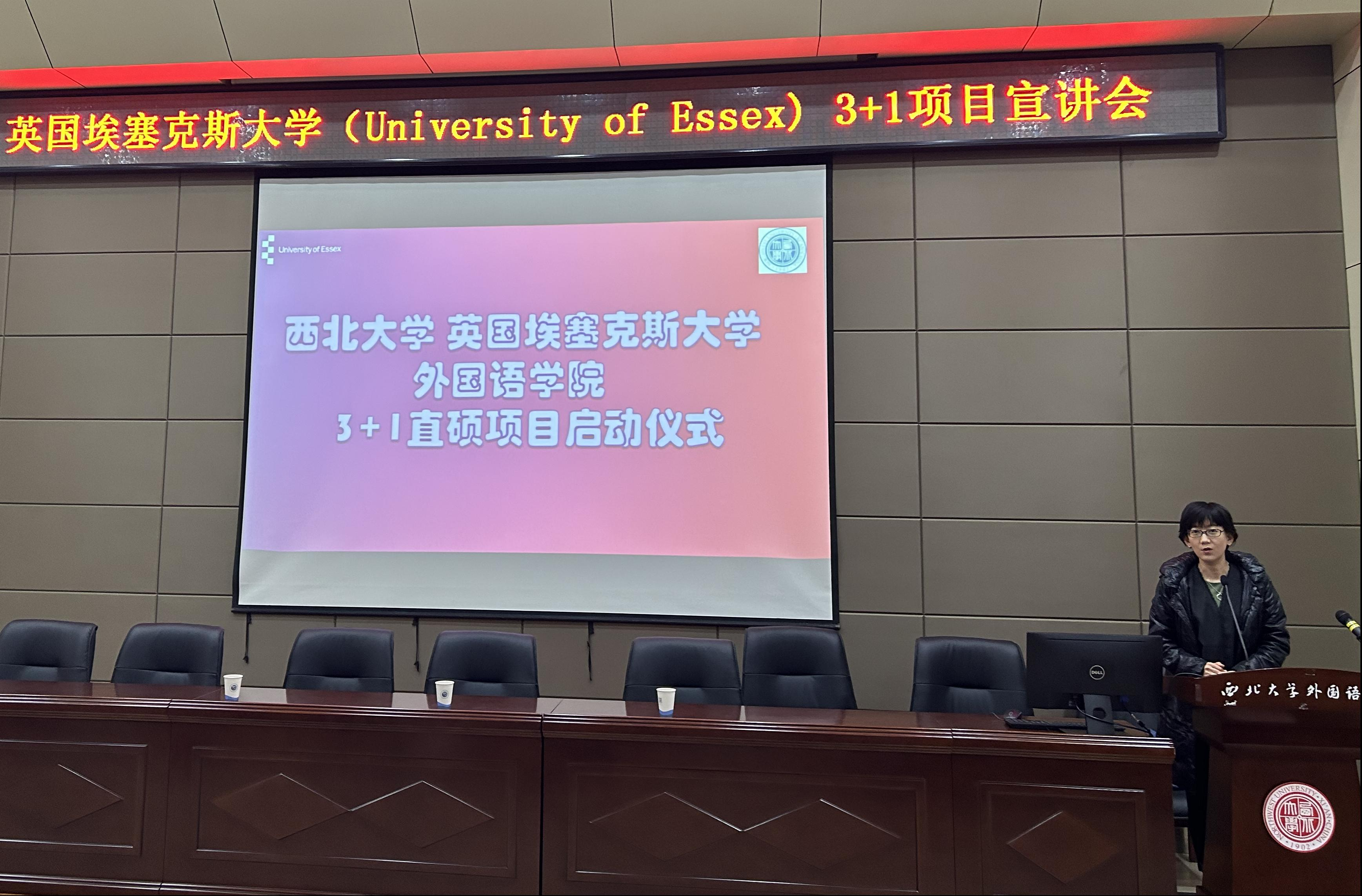 On November 22, 2023, a delegation from the University of Essex in the United Kingdom visited our school and held a launch ceremony for the 3+1 direct master's program collaboration between our school and the University of Essex in the Second Classroom. This program, following the introduction of the 1+1+1 master's program between our school and the University of Essex, is an innovative cooperative initiative. According to the agreement, our students have the opportunity to further graduate learning in fields such as English education, linguistics, and translation at the University of Essex in the fourth year after completing three years of learning and achieving a score of more than 70%, provided they meet the language requirements.