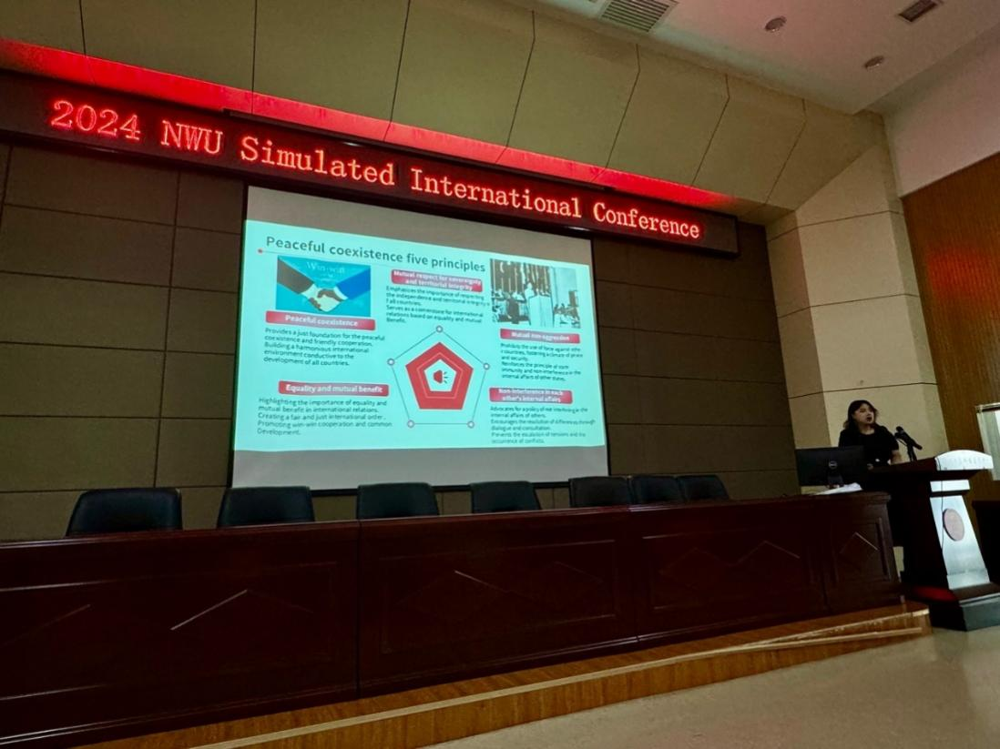On the morning of June 29th, Northwest University's undergraduate and master's students convened for a joint simulation international conference on the theme of “Chinese Wisdom and the Construction of a Community with a Shared Future for Mankind”. The event took place at the Foreign Language Classroom II on the Chang'an Campus, and attracted nearly two hundred participants from twenty departments across the university. Organized meticulously by Professor Gao Shuling and Professor Gao Minna from the School of Foreign Languages, the conference was inaugurated with opening remarks by Vice Dean Li Mi.