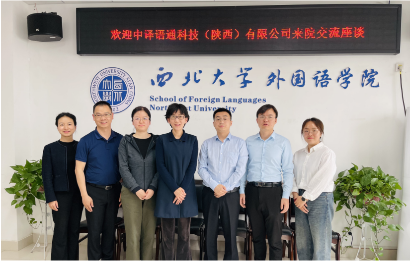 On April 19, 2024, Global Tone Communication Technology (GTCOM) Co., Ltd. visited the School of Foreign Languages at Northwest University to engage in discussions on university-industry cooperation. The meeting was attended by Cao Ruonan, Dean of the School of Foreign Languages, Yang Ying, Associate Dean for Administration, He Hua, Director of the MTI Education Center, Associate Professor Chen Hanliang from the MTI Education Center. In addition, Ren Fei, Director of the Innovation and Application Division, Ji Zilong, Director of the Data Operations Department, and Chen Dong, Director of the Language Services Division from GTCOM (Shanxi) Technology Co., Ltd also attended this meeting.