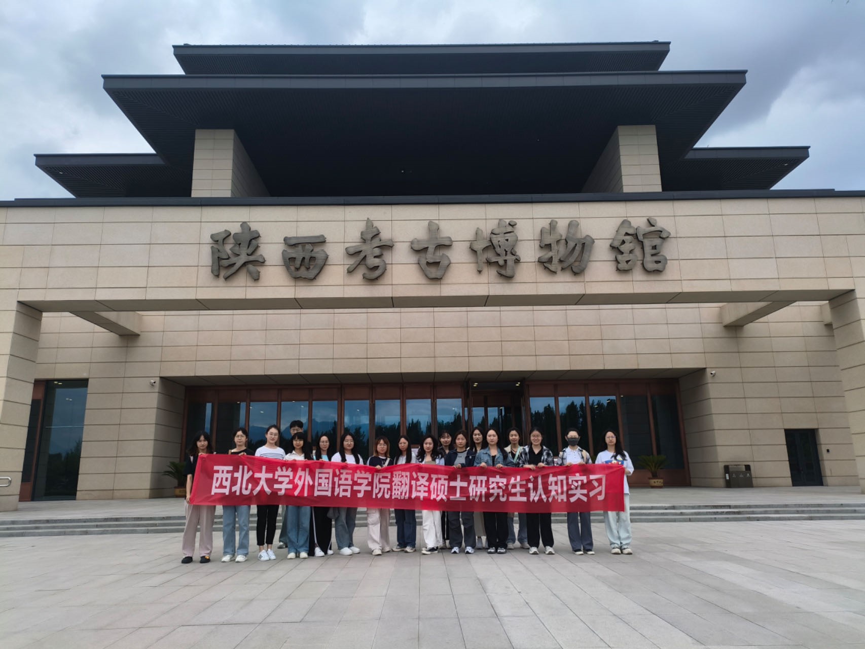 On June 4, 2024, at 230 PM, Yang Ying, Deputy Dean of the School of Foreign Languages at Northwest University, and He Hua, Director of the MTI Center, organized a visit for 18 student representatives from the Class of 2023 MTI to the Shaanxi Archaeological Museum.