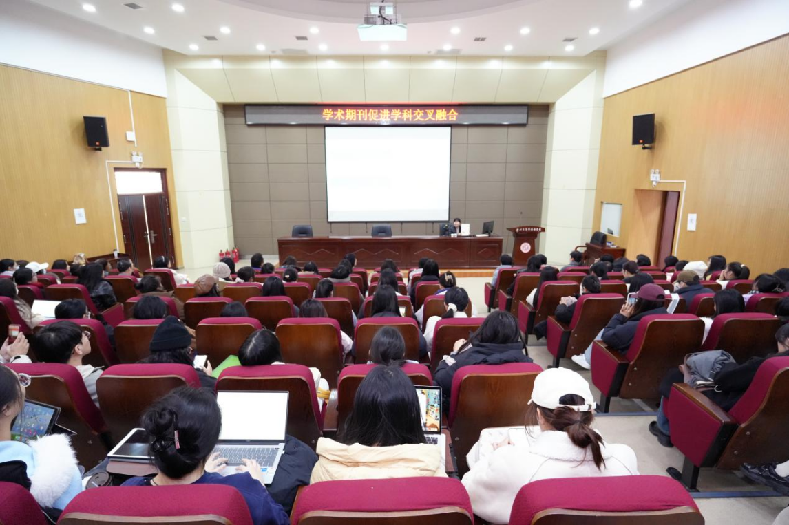 On the afternoon of December 11, 2024, Professor Wei Ling, Director of the Administrative Centre for Journals of the Northwest University and Editor-in-Chief of Journal of Northwest University (Philosophy and Social Sciences Edition), was invited to give an academic lecture titled “How Academic Journals Promote Interdisciplinary Integration” to the faculty and students of the School of Foreign Languages. The lecture was hosted by Professor Cao Ruonan, Dean of the School of Foreign Languages, and attended by more than 100 faculty members and students.