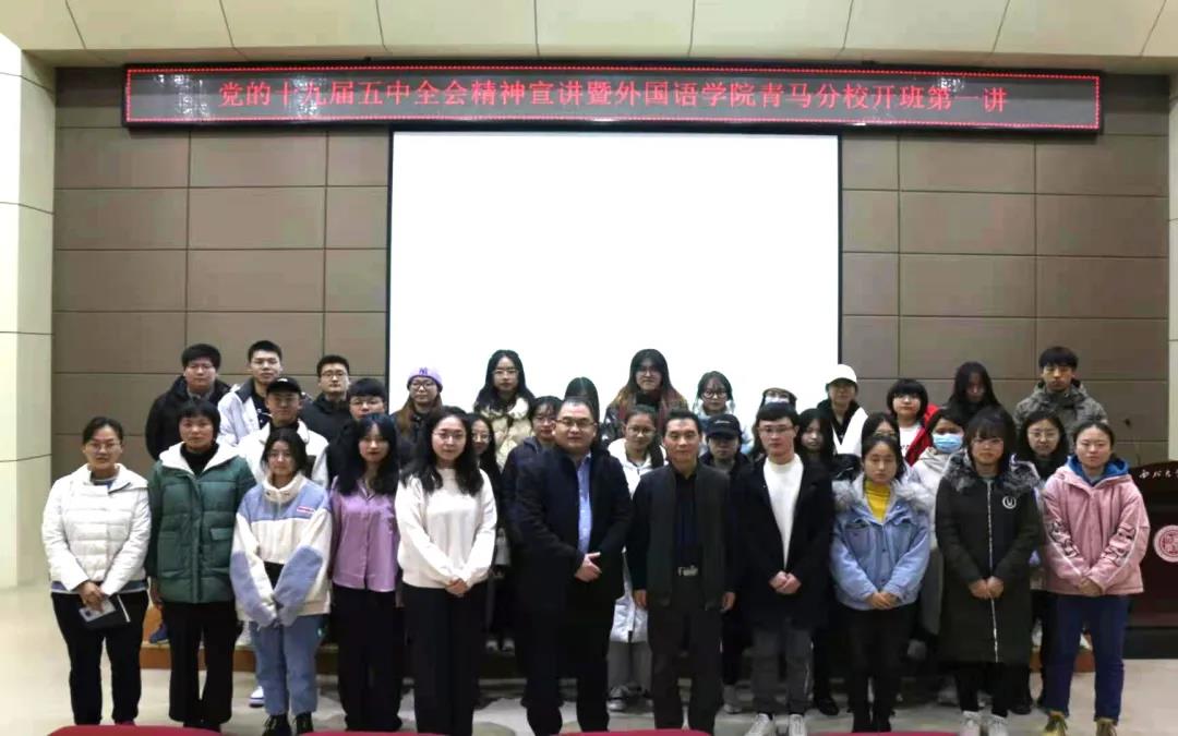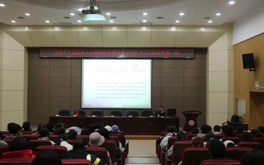 2020年12月10日晚,党的十九届五中全会精神宣讲暨yl6809永利官网集团青马分校开班第一讲在外语第二课堂举行。马克思主义学院苟昭赟副教授以《新发展阶段 新发展理念 新发展格局——读懂十九届五中全会的“导航密码”》为题,为我院青马学员和全体2020级本科生做专题报告。