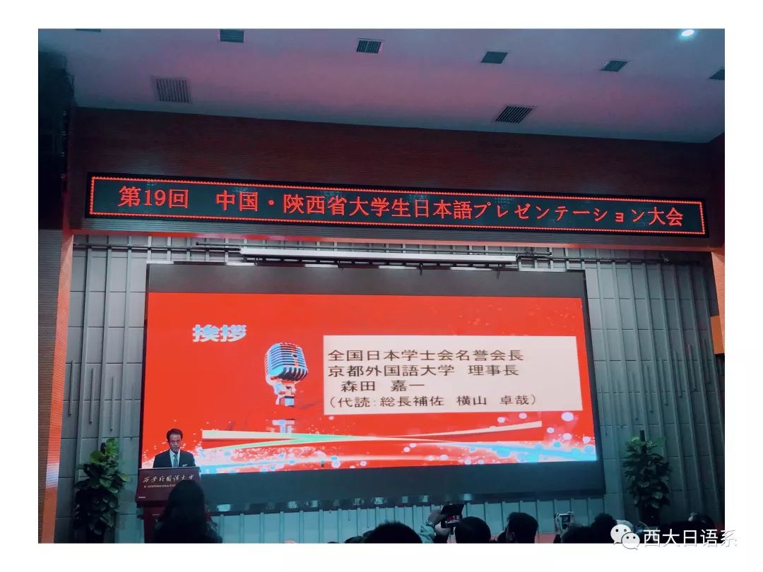 2018年11月3日,在西安外国语大学举行的日语教育国际交流事业第19届陕西省大学生日语才艺大赛中,我院日语系2015级穆夏洁同学获得二部二等奖。大会由中日人文交流大学联盟、西安外国语大学、特定非营利活动法人环境研究和教育国际交流协会联合举办。此次是我校第一次参加该项赛事。