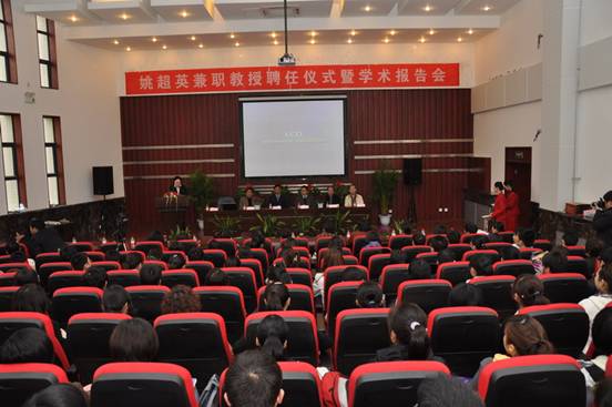 聘任仪式后,姚超英副秘书长用流利的英语为yl6809永利官网集团师生作了主题为“商务礼仪”的学术报告。