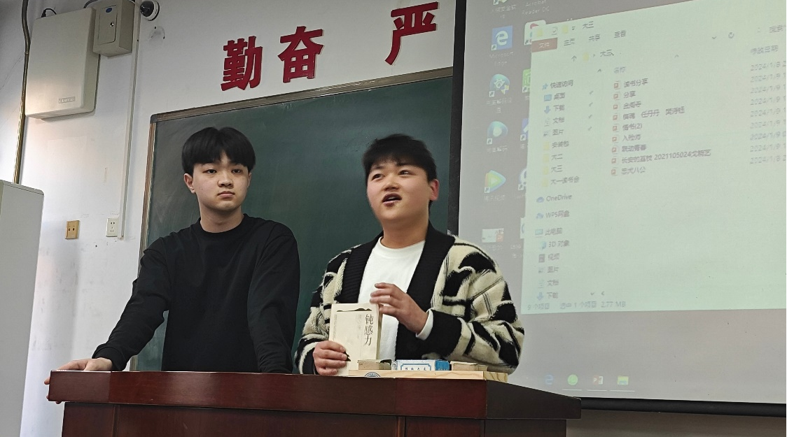 同学们站在讲台上,分享自己喜欢的书籍、影视作品,发表自己的看法,阐述分享缘由,大家口中的文字交织、碰撞,点亮思维,带来心灵的共鸣。从分享中看见风采,在交流中体现风格,在答疑解惑中积累经验,在感悟中镌刻实践活动熠熠生辉的印记。
