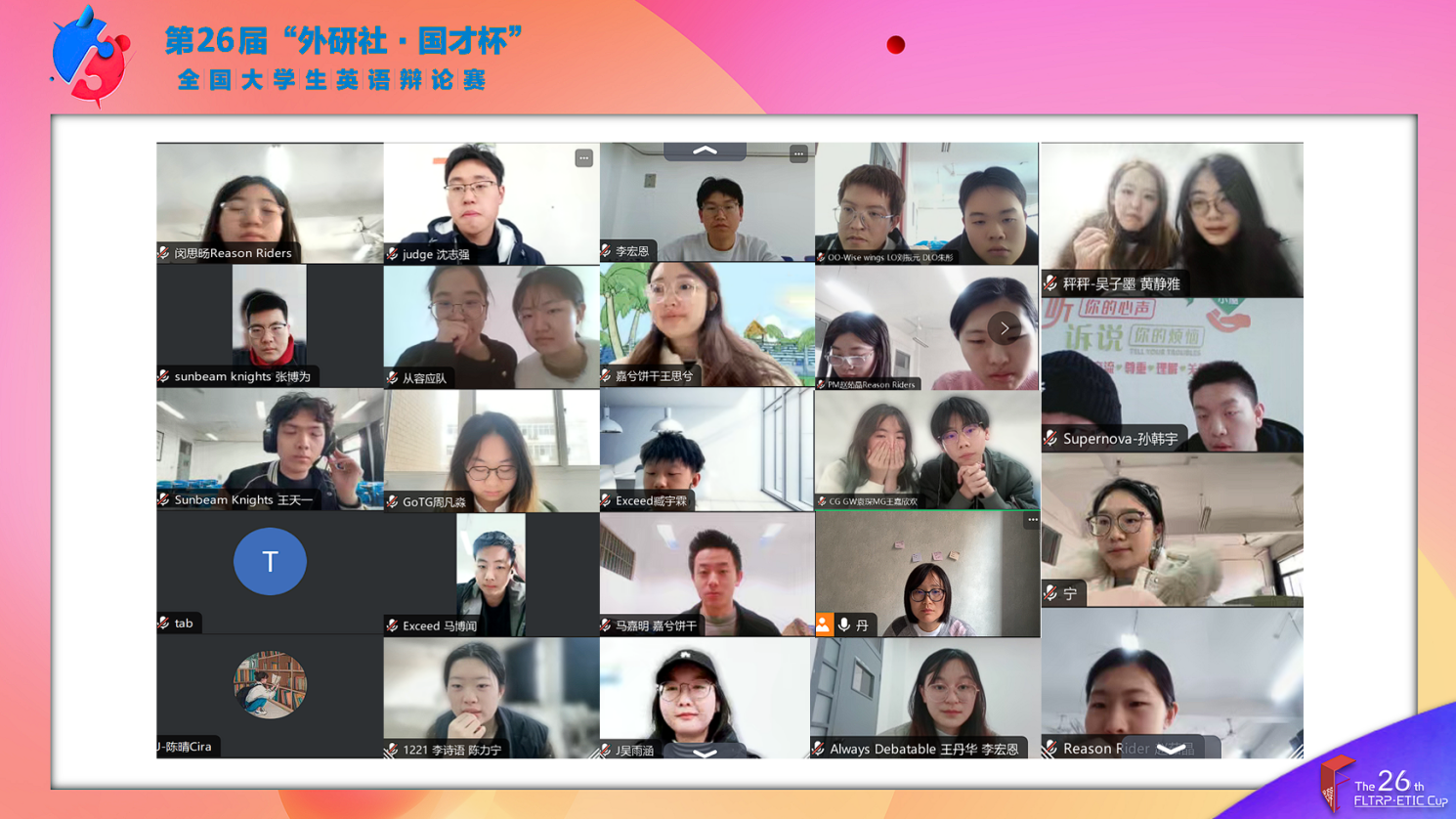 2024年3月11日,为期三天的第26届“外研社•国才杯”全国大学生英语辩论赛yl6809永利集团校级选拔赛圆满落幕。比赛以线上线下相结合的方式进行,来自我校yl6809永利官网集团、经济管理学院、城市与环境学院、法学院、新闻传播学院、软件学院、化工学院和数学学院等不同院系的24位选手、12支队伍参加了比赛。评委由yl6809永利官网集团的宣菁、马莉两位老师和来自中山大学、广东外语外贸大学、天津外国语大学、西安财经大学等多所高校的11位辩论队长共同担任。