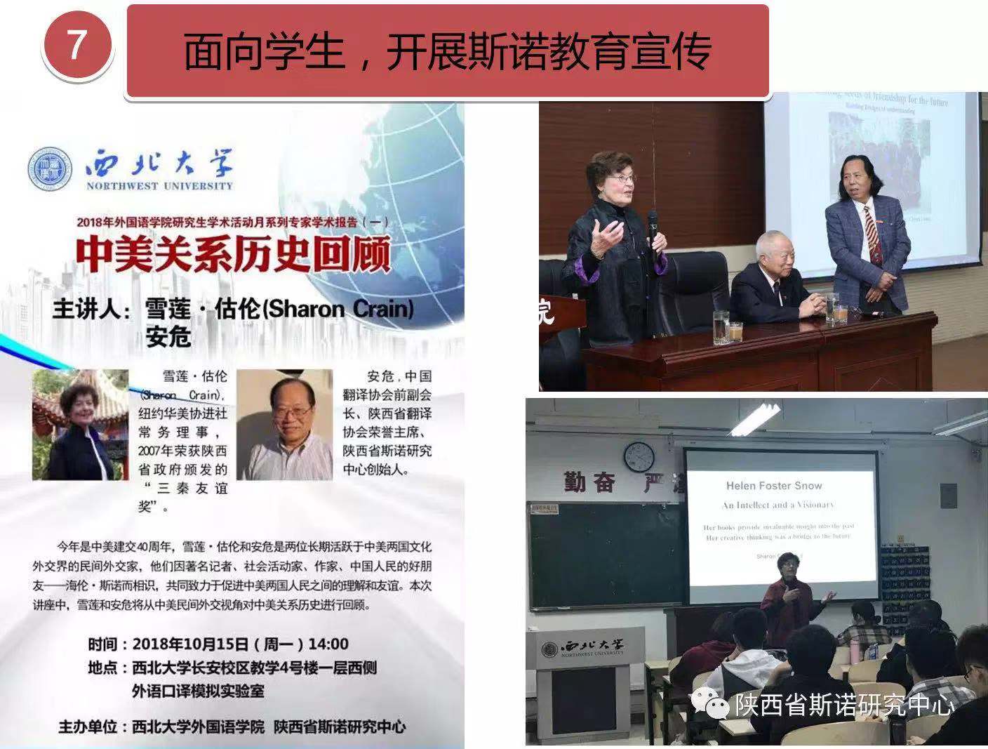 陕西省斯诺研究中心在2017年换届,精简调整了理事成员。一年来,在新一届理事会的监督和支持下,我们不仅顺利完成了中心传统的品牌翻译赛事,加强了与斯诺界中外各单位的合作联系,还与时俱进,跟上时代步伐,开辟了新的传播方式,从教育课堂角度扩大对斯诺精神的宣传。