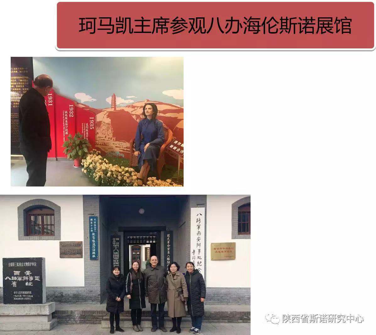 珂马凯主席参观了八路军西安办事处纪念馆,对“伟大的女性——海伦·斯诺生平图片展”颇为赞叹。他在留言簿上写到:“海伦·斯诺想到的让难民搞合作的点子太伟大了,它可以在当今战乱的国家和地区推广。”珂马凯主席还希望能与陕西省斯诺研究中心合作,启动以工合国际为核心的公益合作项目。