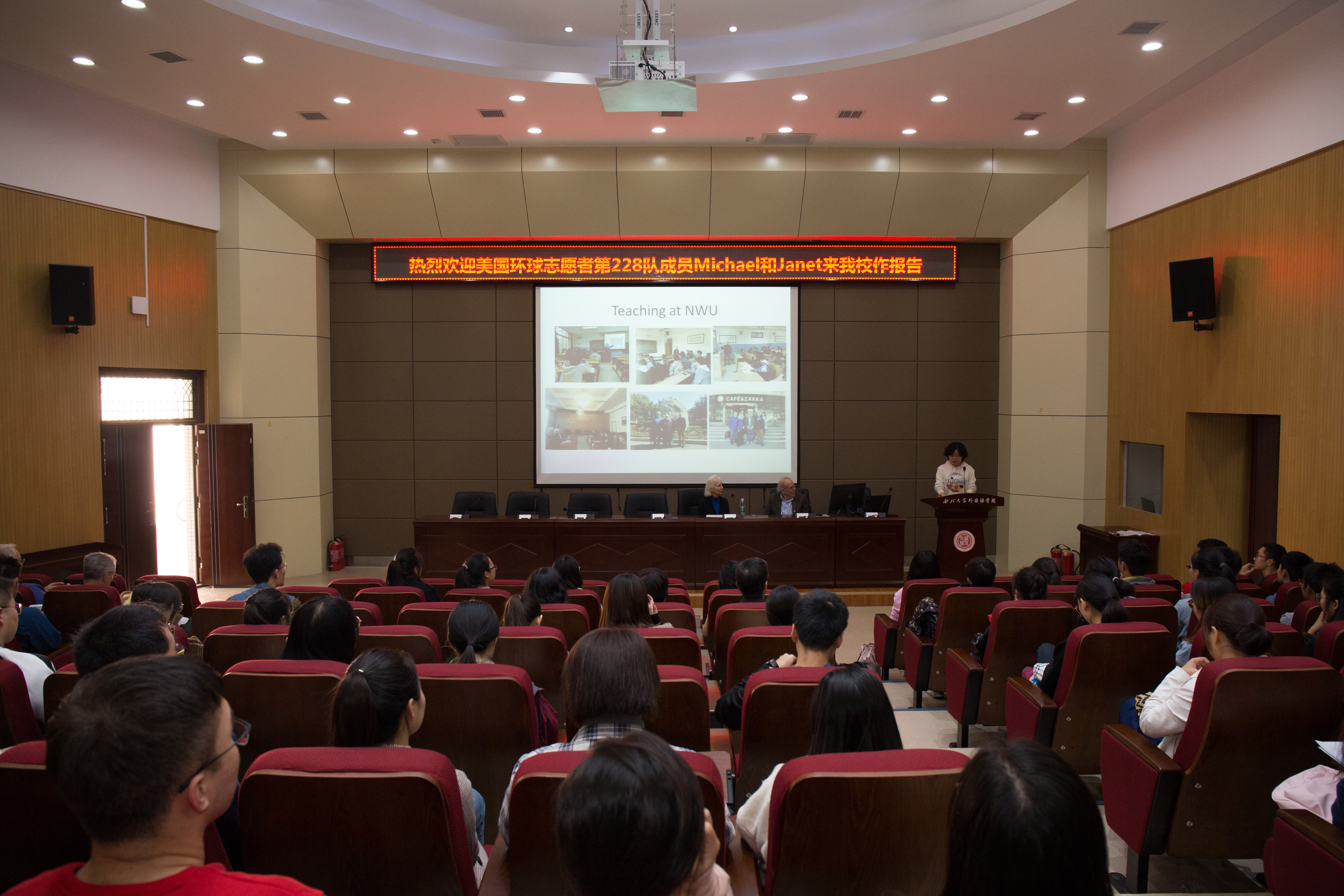 10月29日下午,美国环球志愿者罗德里格斯夫妇应yl6809永利官网集团邀请,在外语第二课堂为我院师生作了题为“美国人眼中的中国人”的精彩报告。罗德里格斯夫妇是美国环球志愿者来华服务的228队成员,曾多次到西安各大中小学义务讲授英文课程。