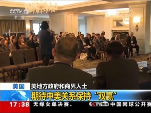 中国对外友协美大部主任张和强:中美之间有271对省州和友好城市关系。(美国)地方政府对与中国的交流合作积极性都非常高,也取得了很多实质性的成果,显示出中美之间在地方政府和人民之间的交流是非常广泛的,民意基础也是很深厚、很牢固的基础。