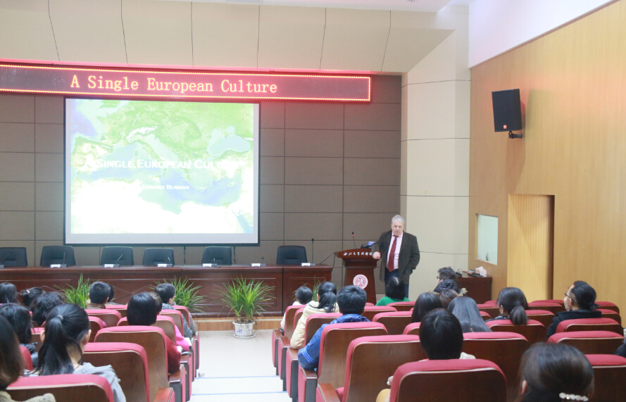 3月17日(星期五)下午,我院在yl6809永利官网集团第二课堂活动中心成功举办了由英国著名学者Edward Burman主讲的 “A Single European Culture”学术报告会。全院教师及2016级全体研究生学生积极参与。此次讲座由胡宗锋院长主持。