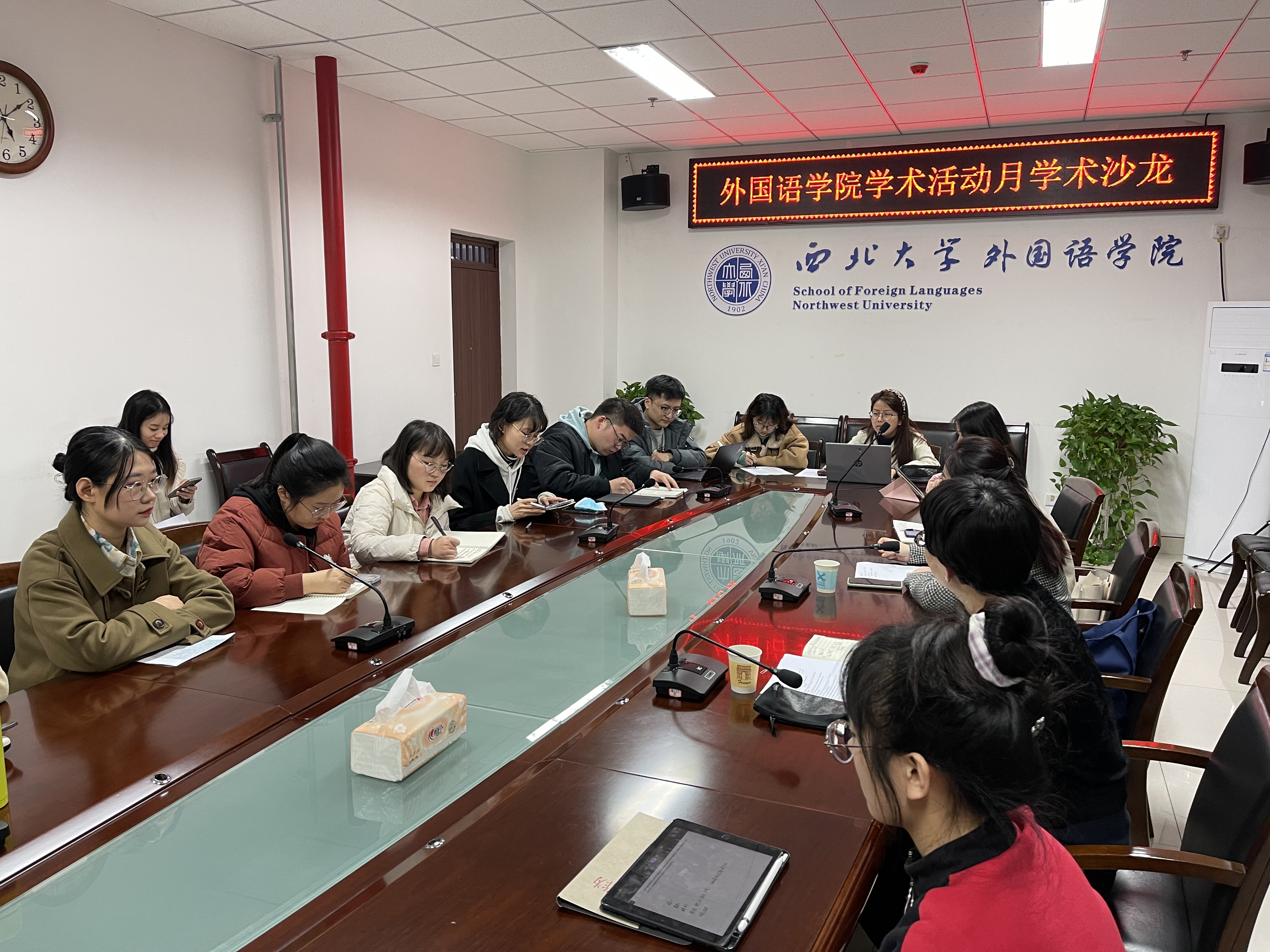 为进一步加强研究生校园学术文化建设,优化育人环境,激发外语类研究生的学术创新活力,学院于11月23日下午在西学楼举办我院研究生学术活动月首次沙龙活动。活动根据主题内容分为文学组、语言学组、翻译组、国别组、日语组。本次活动由相关专业老师主持,2021级学术型硕士与2022级部分硕士参会。