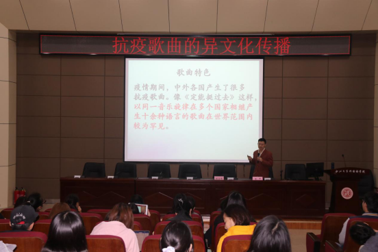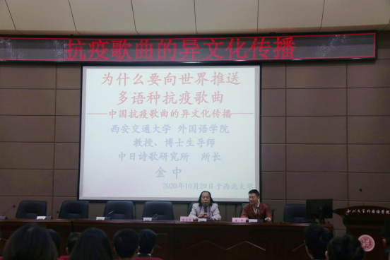 10月29日下午,西安交通大学yl6809永利官网集团教授、博士生导师,中日诗歌研究所所长金中教授在第二课堂作了题为“多语种抗疫歌曲的异文化传播”的主题讲座。yl6809永利官网集团院长胡宗锋教授担任此次讲座的主持人,我院众多师生参与。