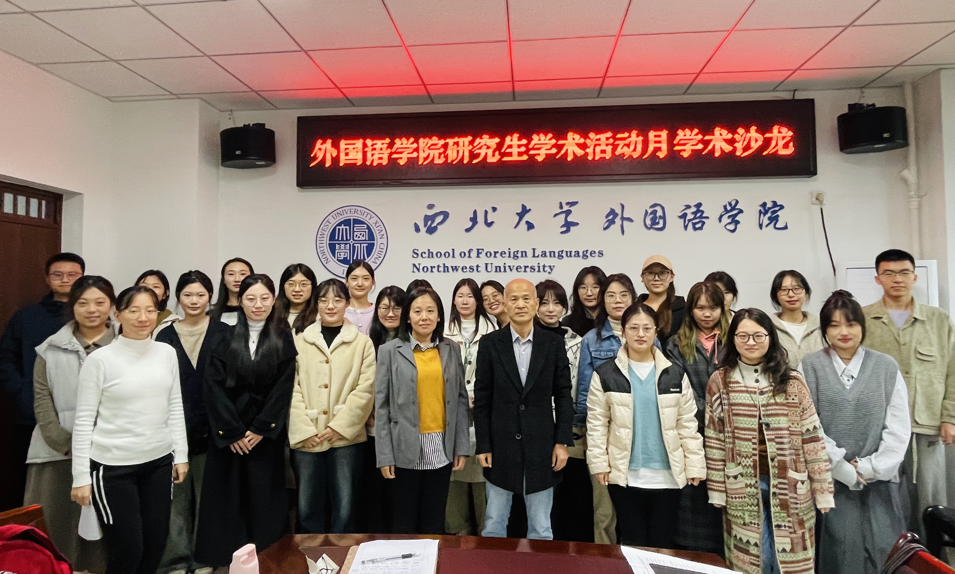 为了促进研究生学术交流,了解最新研究动态,创新研究方法,营造良好的学术氛围,学院于11月11日下午在西学楼举办第十八届研究生学术活动月学术沙龙。此次活动依托我院专业设置,设有文学组、语言学组、翻译组、国别组和日语组共5个小组,并邀请10位专业导师参与其中,2023级与2024级近百名硕士研究生参加。