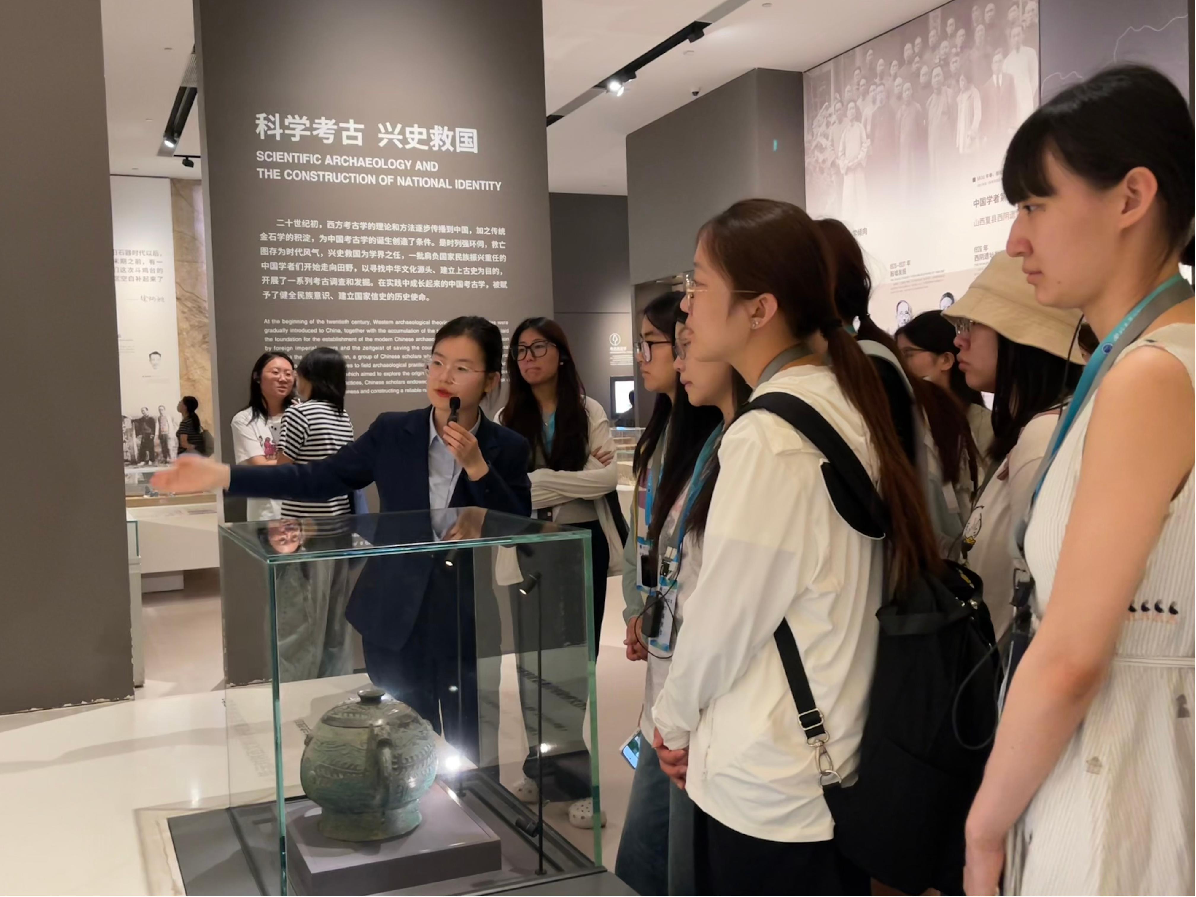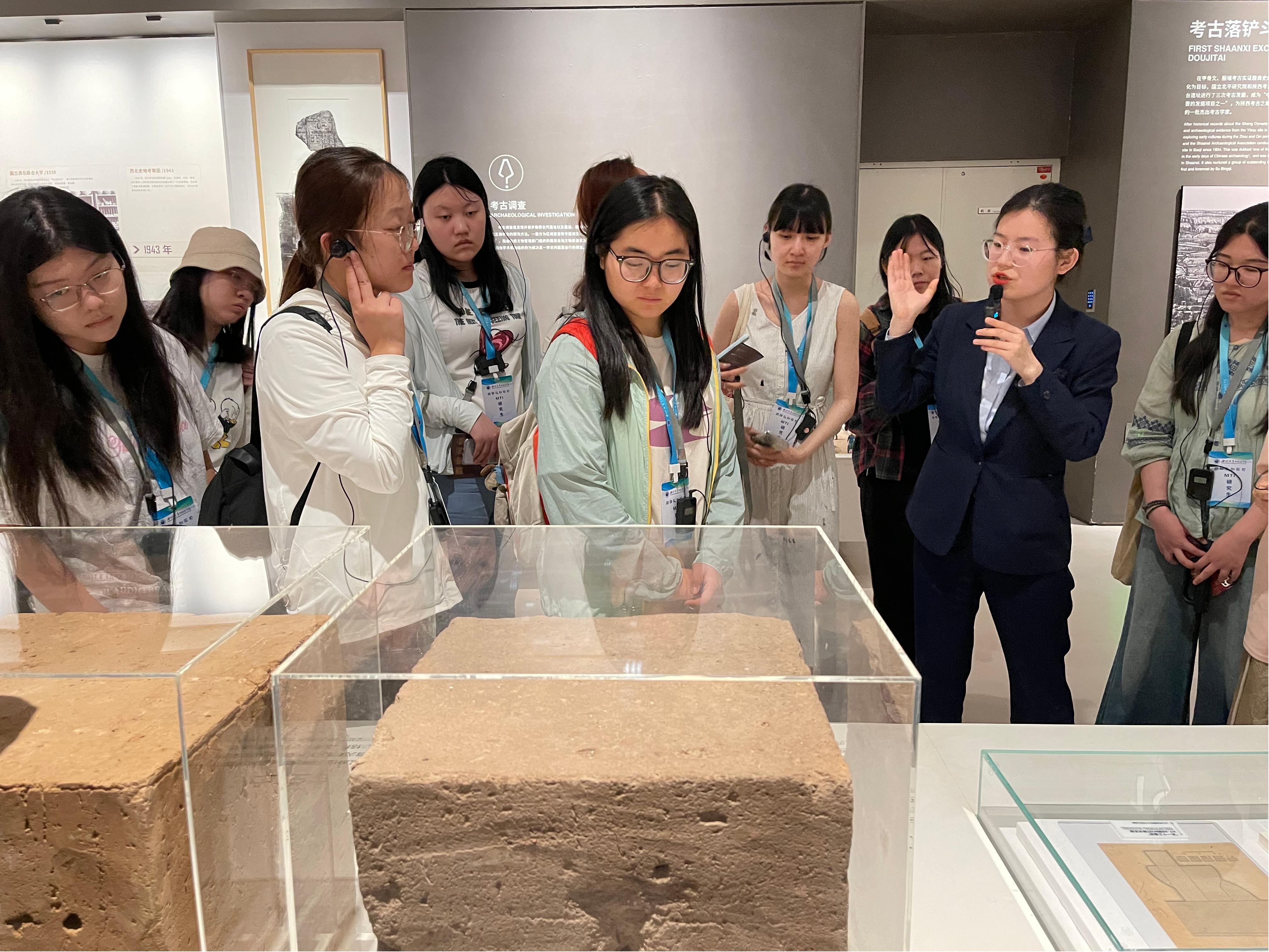 下午,师生前往陕西考古博物馆进行参观学习。博物馆讲解员为师生详细介绍了“考古历程”“文化谱系”“考古发现”“文保科技”四大展区内容,并就考古学专业术语翻译进行了深入解析。社教部李懿老师陪同师生进行互动实践和研讨活动。通过实地观摩,同学们对我国珍贵的历史文化遗产的发掘和保护有了更深的认识,也立志通过专业所长积极推动文化遗产的国际传播。曹若男教授、张立茵副教授代表学院向两家单位分别赠送了纪念牌匾和礼品,活动在热烈的氛围中圆满结束。