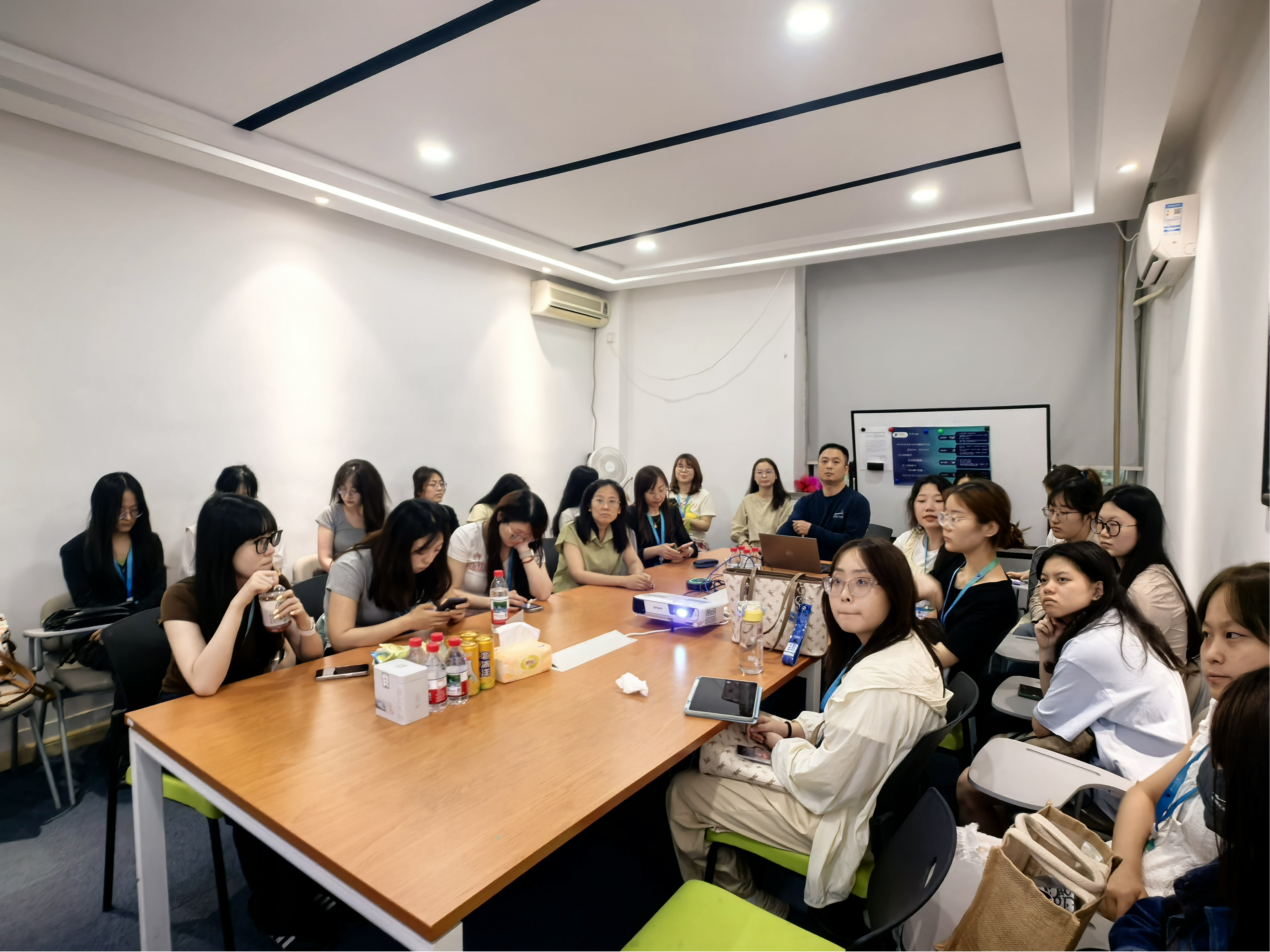 公司人力资源负责人李焕焕热情接待师生并主持宣讲会,全面介绍了公司发展历程、核心业务、人才培养体系及企业文化,并就翻译行业趋势、语言服务市场动态及翻译技术最新进展进行解读。宣讲后,学生踊跃提问。师生们随后参观了公司现代化办公环境,感受工作氛围。活动后,由张欣、马圣渤代表学院向雅信诚公司赠送纪念品。