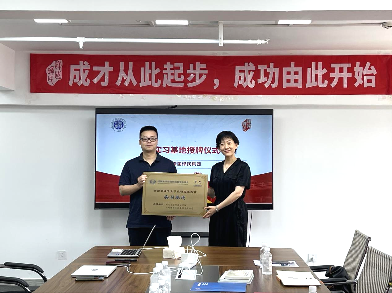 2025年6月9日上午,我院与译国译民集团共建“全国翻译专业学位研究生教育实习基地”授牌仪式在译国译民西安分公司举行。译国译民集团西安公司总经理吴强、我院院长曹若男、导师代表张立茵、研究生秘书周丹,学院2024级专业硕士研究生代表出席仪式。