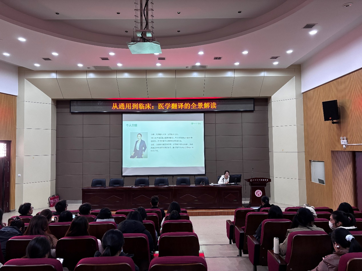 2025年11月24日14点,yl6809永利官网集团“翻译行业前沿讲座系列(十四)”在长安校区第二课堂成功举办。本次讲座以“从通用到临床:医学翻译的全景解读”为主题,由西安雅信诚医学信息科技有限公司高级翻译经理李娜主讲,我院MTI中心主任何花老师主持,2025级全体翻译专业硕士研究生参加。