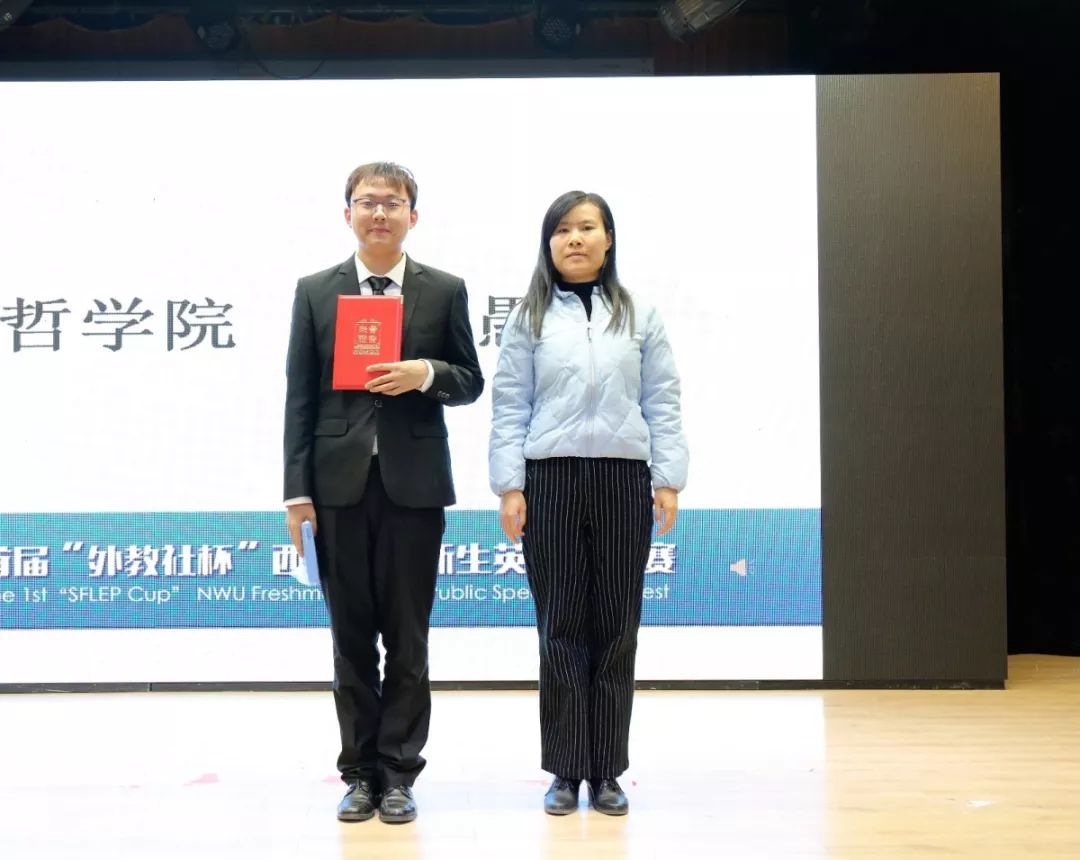 学生工作部董国强部长、yl6809永利官网集团党委王军书记、yl6809永利官网集团胡宗锋院长,校团委刘博副书记,校教务处王晋荣副处长,yl6809永利官网集团党委徐自成副书记,yl6809永利官网集团任海棠副院长,yl6809永利官网集团曹若男副院长,上海外教社西北区苏云经理出席了随后进行的颁奖暨闭幕典礼。