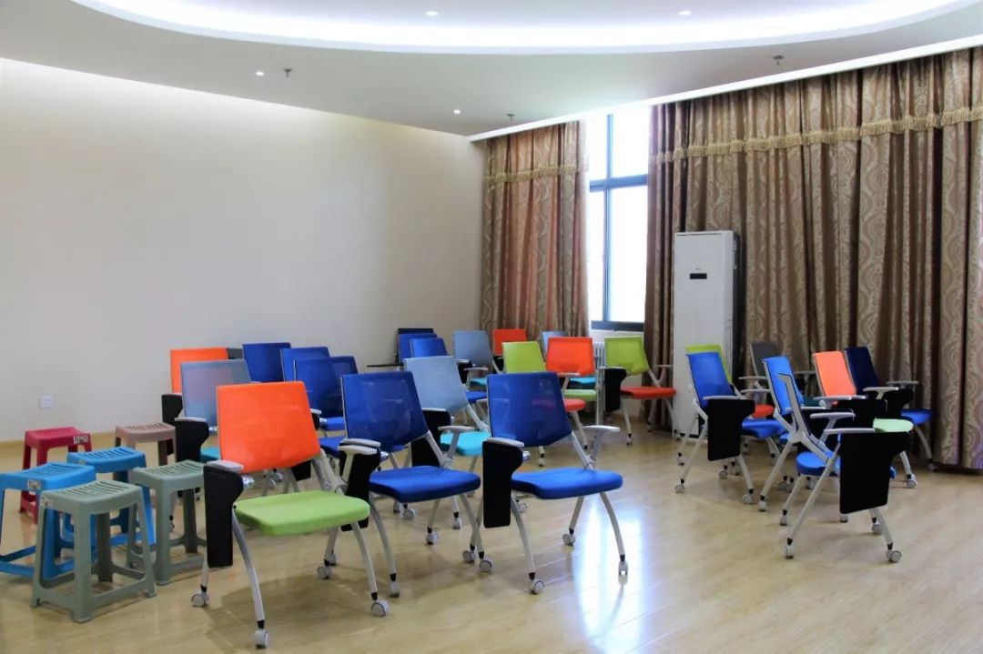 走进心理健康教育中心,宽敞明亮的楼道首先映入学生们的眼帘,在老师的带领下,大家进入心理团辅教室。