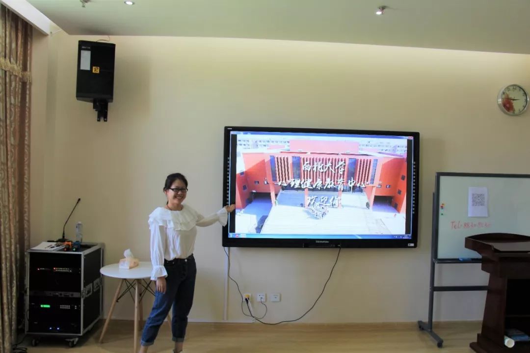 在这里,心理健康教育中心李岚溪老师用短片介绍了有关心理健康教育中心的详细情况,阐明了心理教育的重要性,让同学们更深层次了解心理健康教育中心,并为免费心理咨询提供了预约途径。在对相关心理咨询预约流程和事宜作了说明后,老师便带领大家开始了参观。