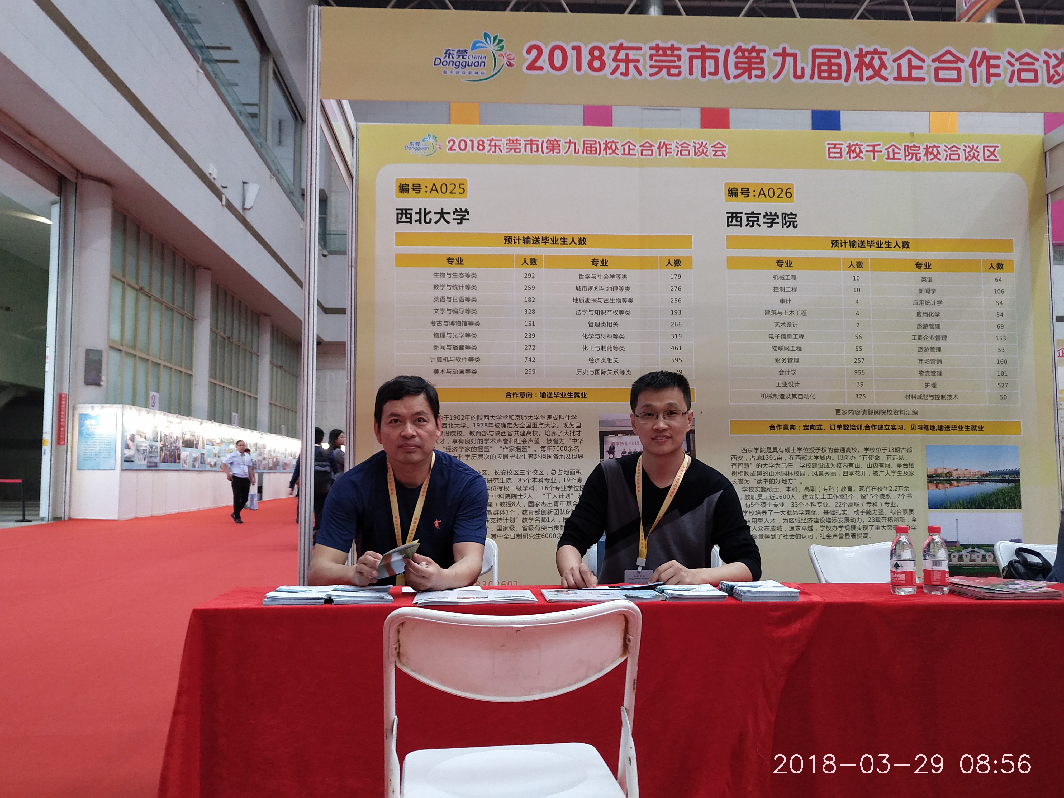 3月28—30日,yl6809永利官网集团选派教职工代表学校参加了2018年东莞市(第九届)校企合作洽谈会。本届洽谈会由广东省人力资源和社会保障厅、东莞市人民政府共同主办,吸引了200余家高校和近1000家企业参与。洽谈会上,学院代表向参会企业推介了我校毕业生,发放学校及学院宣传资料200余份,并重点与招收外语专业的企业进行了交流洽谈,共带回外语类招聘信息249份。