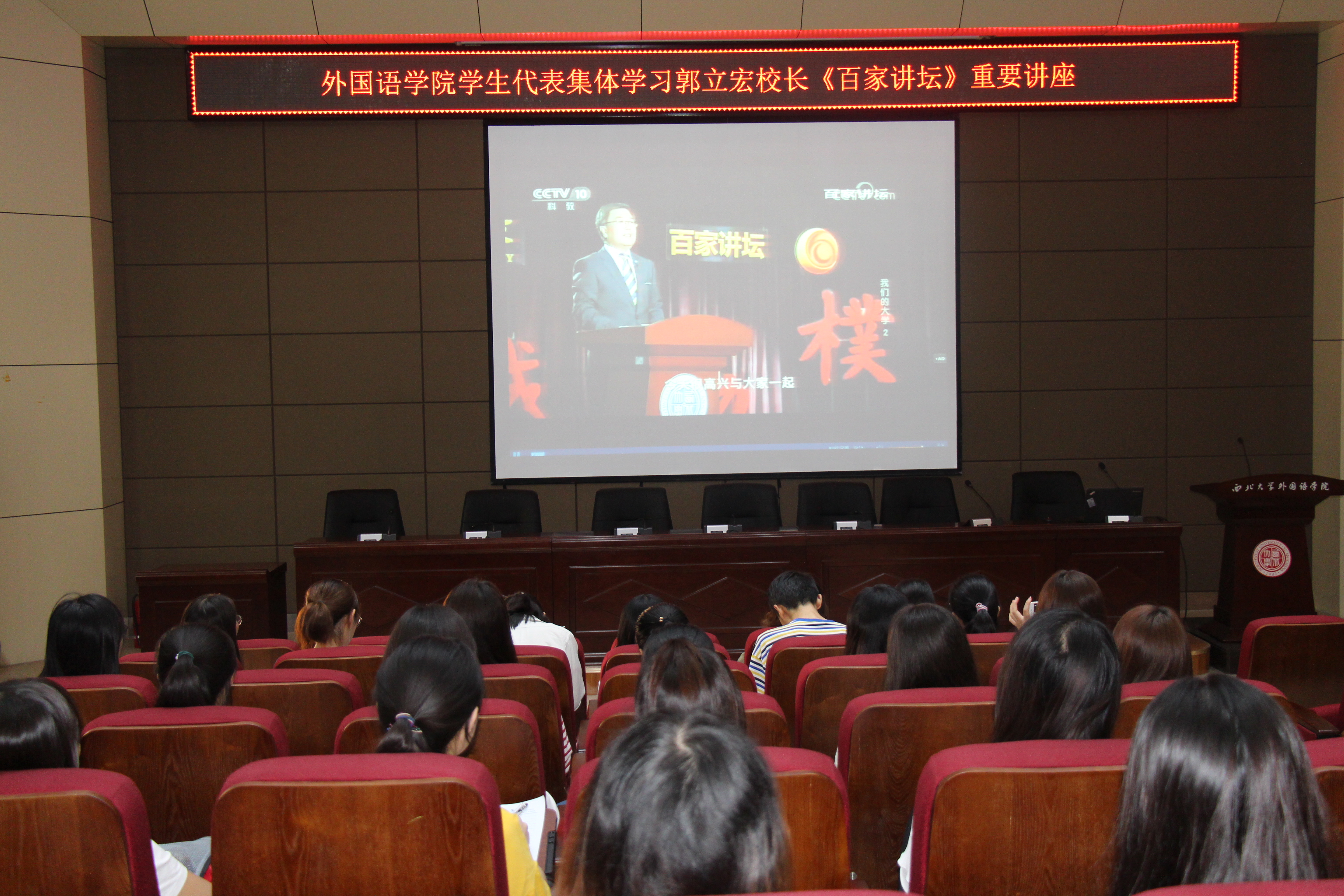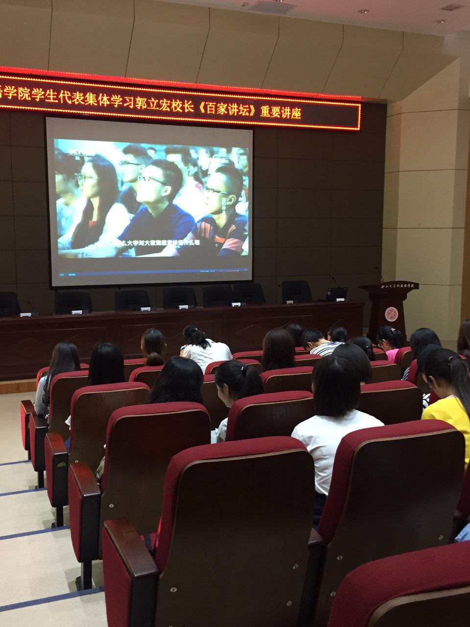 《百家讲坛》栏目组首次走进大学,由大学校长主讲开学第一课。2017年9月11日中午,我院师生聚集在第二课堂报告厅,观看了郭立宏校长《百家讲坛》重要讲座——大与小,谈谈我的大学观。郭校长对大学独到理解让学生们更加深刻地领悟到大学的作用,感受到yl6809永利集团 “公诚勤朴” 之精神,对于指导学生度过精彩的大学时光具有重要意义。