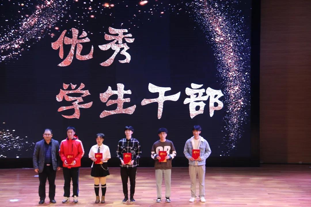 颁奖环节到来,党委书记王军、院长胡宗锋、副院长任海棠、副院长曹若男、党委副书记刘建波、工会主席陈汉良、英语系主任苏蕊、日语系主任胡竹清分别为获得国家奖学金的2位同学、一等奖学金的10位同学、励志奖学金的6位同学、优秀学生干部的5位同学和外语文化节比赛中获得一等奖的6位同学颁奖。