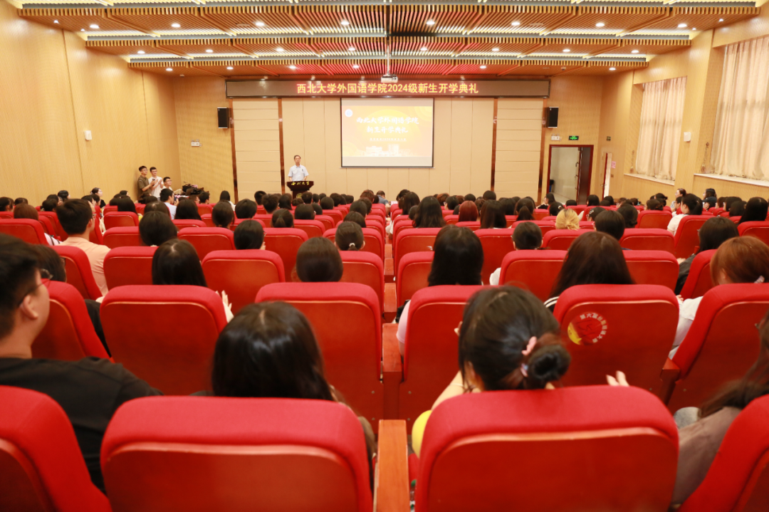 秋光为序,筑梦启航。新学肇始,万象更新。8月27日上午9点,yl6809永利官网集团2024级新生开学典礼在yl6809永利集团太白校区举行。2024级全体本硕新生,学院院长曹若男、党委副书记刘建波、科研副院长苏蕊、行政副院长杨颖、MTI主任何花、英语系副主任李思远、辅导员赵明星及马圣渤参加开学典礼,典礼由学院党委书记赵志厚主持。