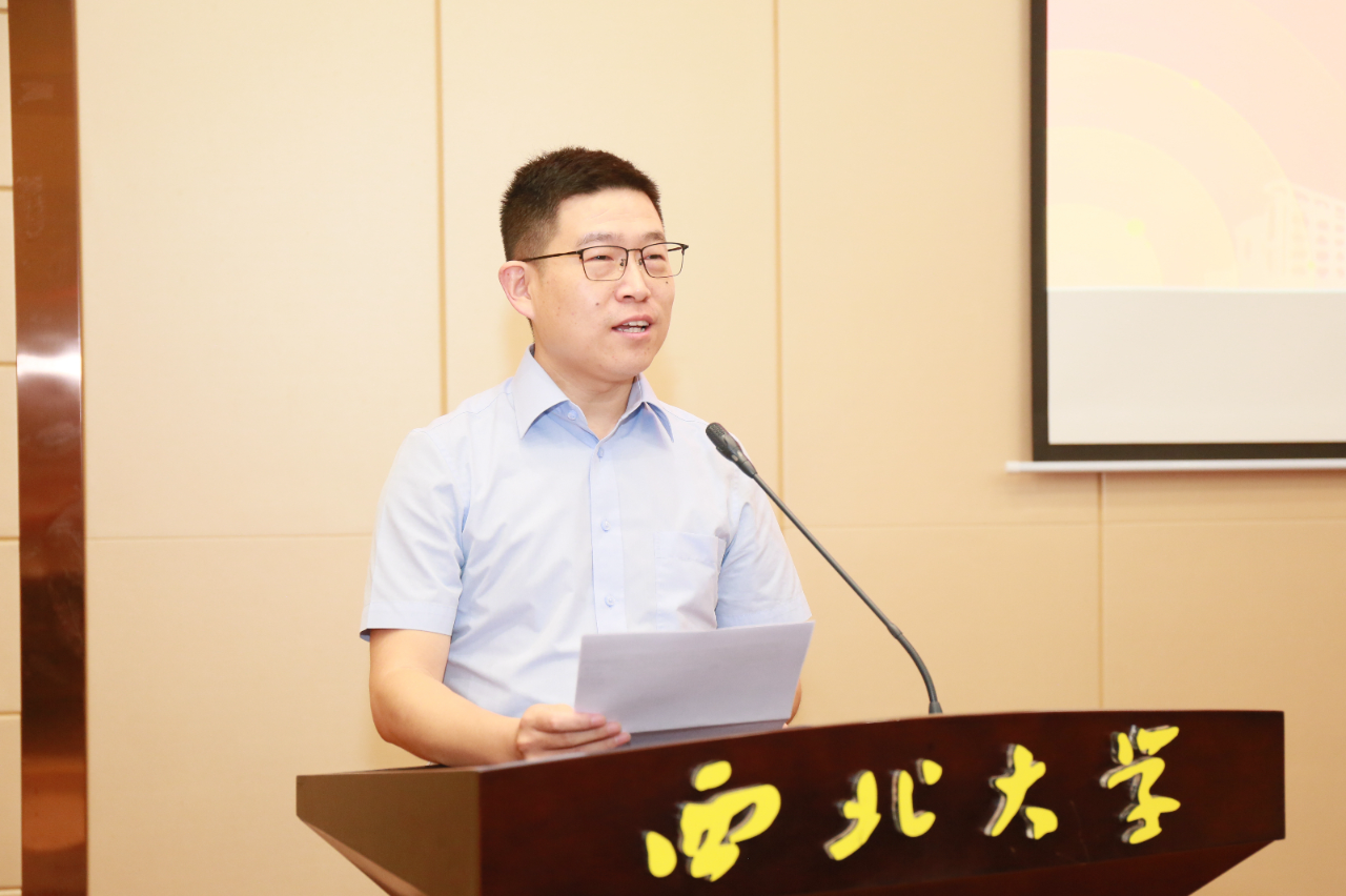 随后,英语系副主任李思远作为教师代表发言,他情真意切地讲述了自己和学院共同成长的故事,希望同学们扎根西北,拥抱世界,同时期望同学们早日找到自己的专业方向与奋斗目标,不辍钻研,有所成就。