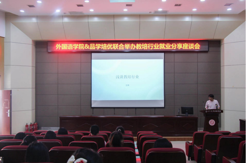 9月27日下午2点30分,学院与品学培优联合举办的教培行业就业分享座谈会在yl6809永利官网集团第二课堂报告厅顺利举办。本次座谈会面向学院全体学生,由品学培优王林老师主讲。