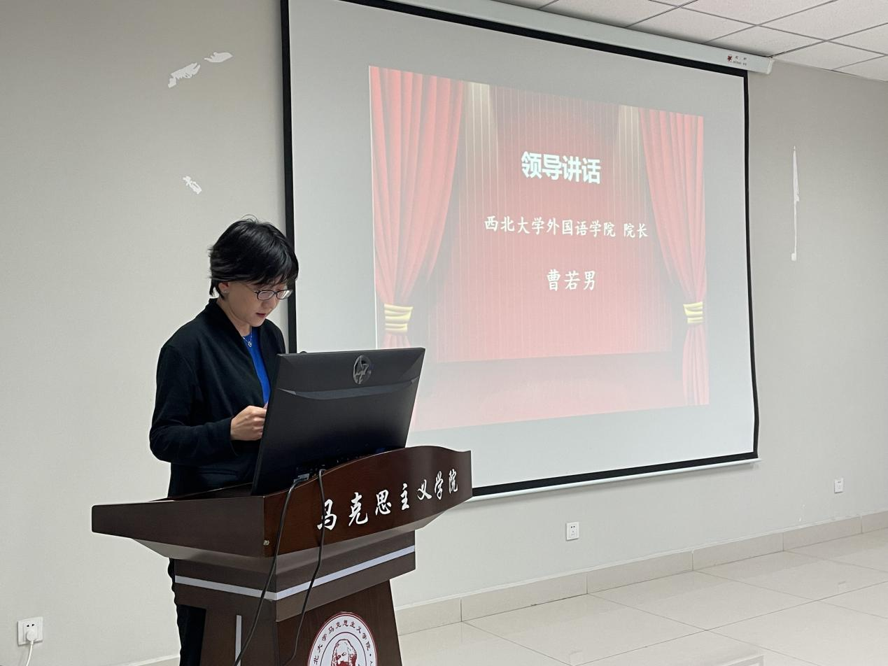 我院院长曹若男作为主办方领导讲话,赞扬了安危先生笔耕不辍,坚持海伦·斯诺研究的热忱与坚守,介绍了陕西省斯诺研究中心落户我院后,我院在斯诺研究与教育传承方面的多项举措与成效。