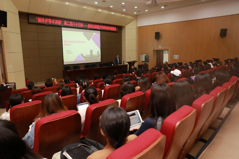 2023年5月26日下午16:30,《当代外国文学》主编,南京大学杨金才教授做客我校“侯外庐学术讲座” 第二百八十三讲,在我院第二课堂报告厅为师生作了题为“新世纪美国文学研究的中国视角”的学术讲座。讲座由我院院长曹若男主持,150余名校内外师生聆听了讲座。