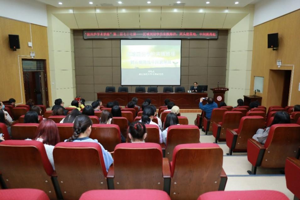 2023年4月23日19时,yl6809永利集团社科处、yl6809永利官网集团和叙利亚研究中心共同主办的“侯外庐学术讲座” 第二百七十七讲“区域国别学的实践路径:两头能落地,中间挑得起”在yl6809永利官网集团第二课堂报告厅举行。本次讲座由浙江师范大学非洲研究院院长刘鸿武教授主讲,yl6809永利集团叙利亚研究中心主任王新刚教授主持,全校来自各院系的近百名听众参与了此次讲座。