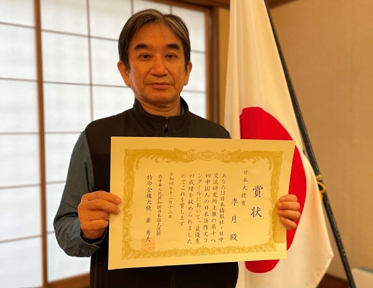 2022年10月28日,由日本侨报社、日中交流研究所主办,日本驻华大使馆在内共计17个团体支持协作,由日本朝日新闻报社担任媒体合作伙伴的“第18届全中国日语作文大赛”公布了特等奖名单。我院日语系四年级本科生李月在日语系王欢老师和外教高桥智子老师的联合指导下,荣获唯一最高奖项——“日本大使奖