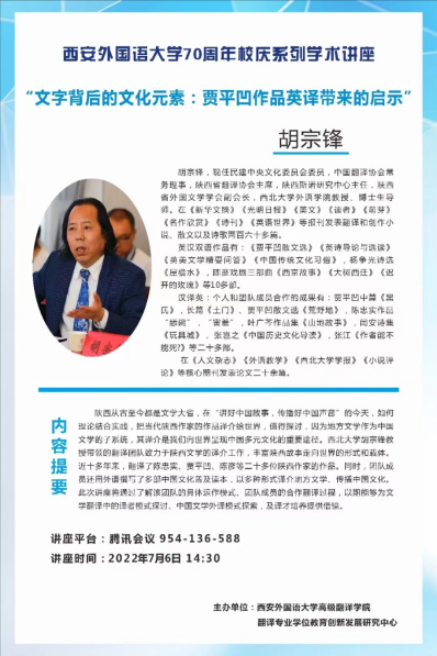 我院胡宗锋教授为西安外国语大学学子做学术讲座: 文字背后的文化元素——贾平凹作品英译带来的启示
