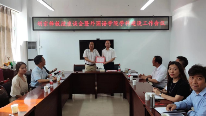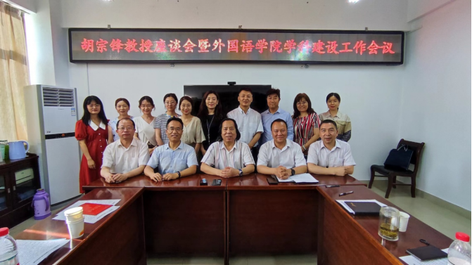 讲座结束后,胡宗锋教授还与外国语学院的部分老师进行了座谈。座谈会由宝鸡文理学院yl6809永利官网集团 副院长史传龙教授主持,学院院长李伟教授、副院长冯琳副教授、学校西北工合研究中心首席研究员张占勤、王卫强教授、大外部主任张雨、翻译系主任鱼为全和翻译系全体教师参加了此次座谈会。