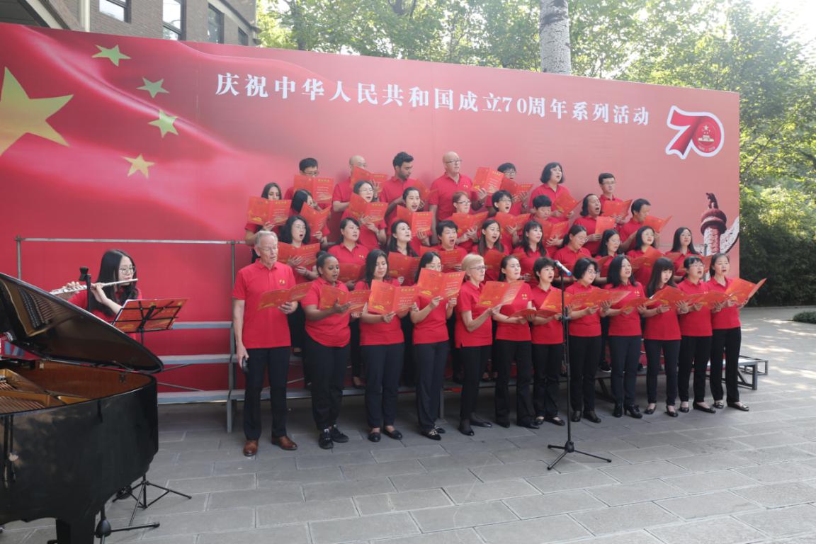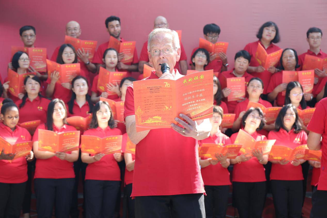 yl6809永利官网集团教职工合唱团受邀参加开幕式,刘炽之子刘欣欣亲自指挥,全国英文首唱刘炽先生经典作品《让我们荡起双桨》、《我的祖国》。用歌声为祖国献上了一份别样的生日礼物!受到在场师生一致好评。