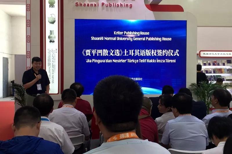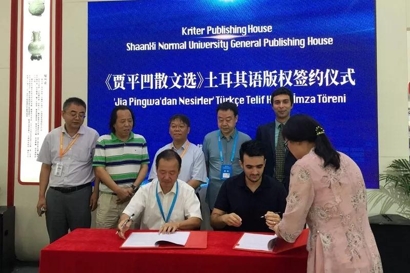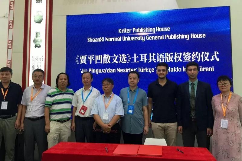 8月21日上午,第26届北京国际图书博览会开展伊始,总社与土耳其Kriter出版社在展会现场举行《贾平凹散文选(汉英对照版)》土耳其语版权签约仪式。陕西省委宣传部厅级领导沙庆超,陕西省委宣传部出版处处长高彦平,陕西省委宣传部版权管理处调研员王新民,陕西省翻译协会会长、yl6809永利集团外语学院院长胡宗锋,土耳其Kriter出版社代表、北京世园会土耳其馆馆长Muhammet,陕西省翻译协会海外理事、yl6809永利官网集团“中土(土耳其)文化交流中心”主任、《贾平凹散文选》土耳其语翻译者艾哈迈德·艾克雷姆·德米尔卡勒,总社副社长屈瑞新等出席了签约仪式。总社大众文化出版中心主任郭永新及相关编辑参加了活动。活动由郭永新主持。