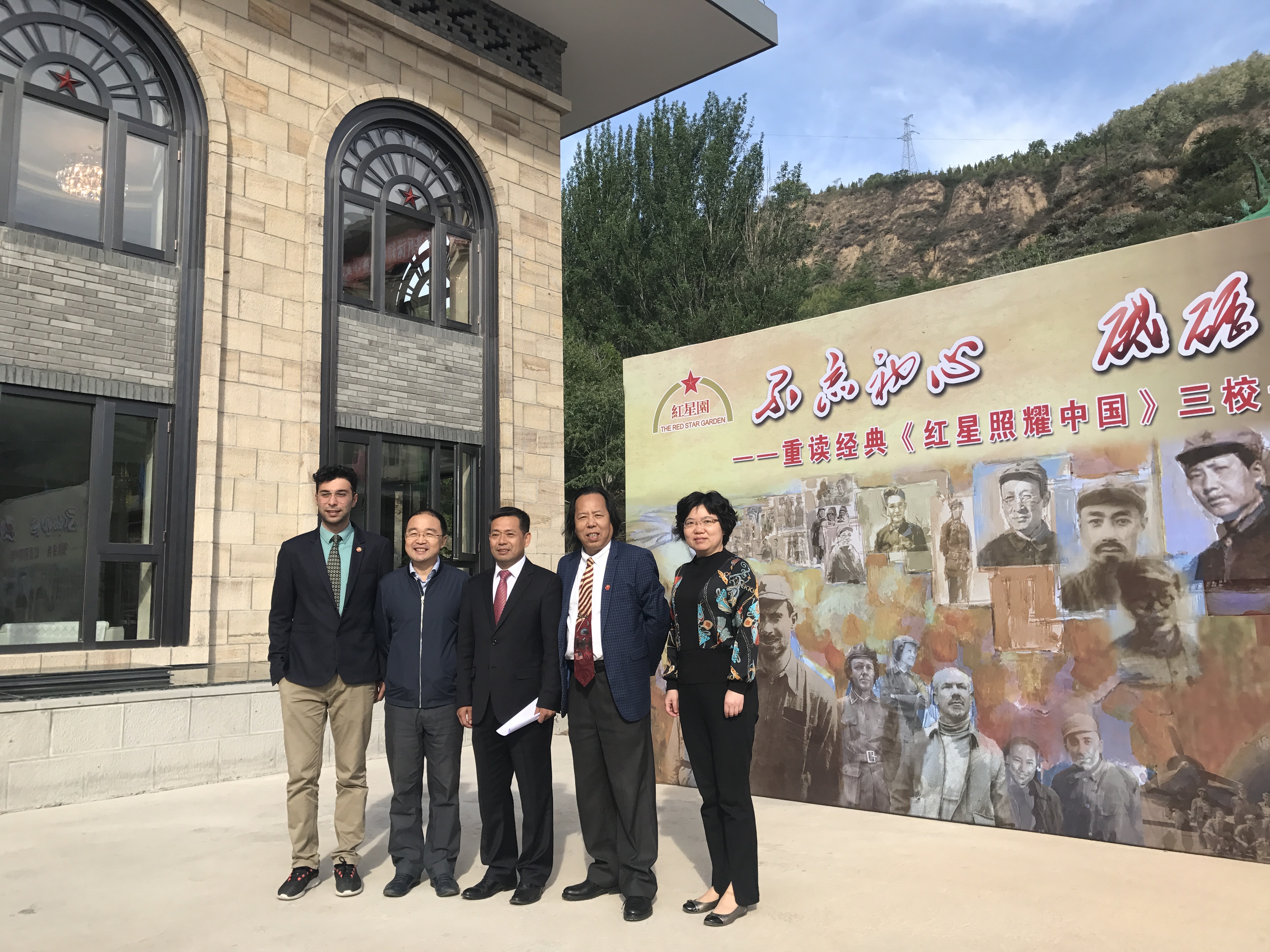 “三校一园”首次研讨会于2019年1月22日在延安大学召开。北京大学的中国埃德加·斯诺研究中心、yl6809永利集团的陕西省斯诺研究中心、延安大学的斯诺研究中心三所大学和延安红星园共建合作平台,推进以两个斯诺研究为核心的学术研讨、教育培训研学、中外跨文化交流活动。2018年7月下旬,我院英语系学生暑期三下乡社会实践小分队曾到红星园参观采访,被园内的国际友人事迹窑洞展览所震撼,拍摄完成了纪录片。