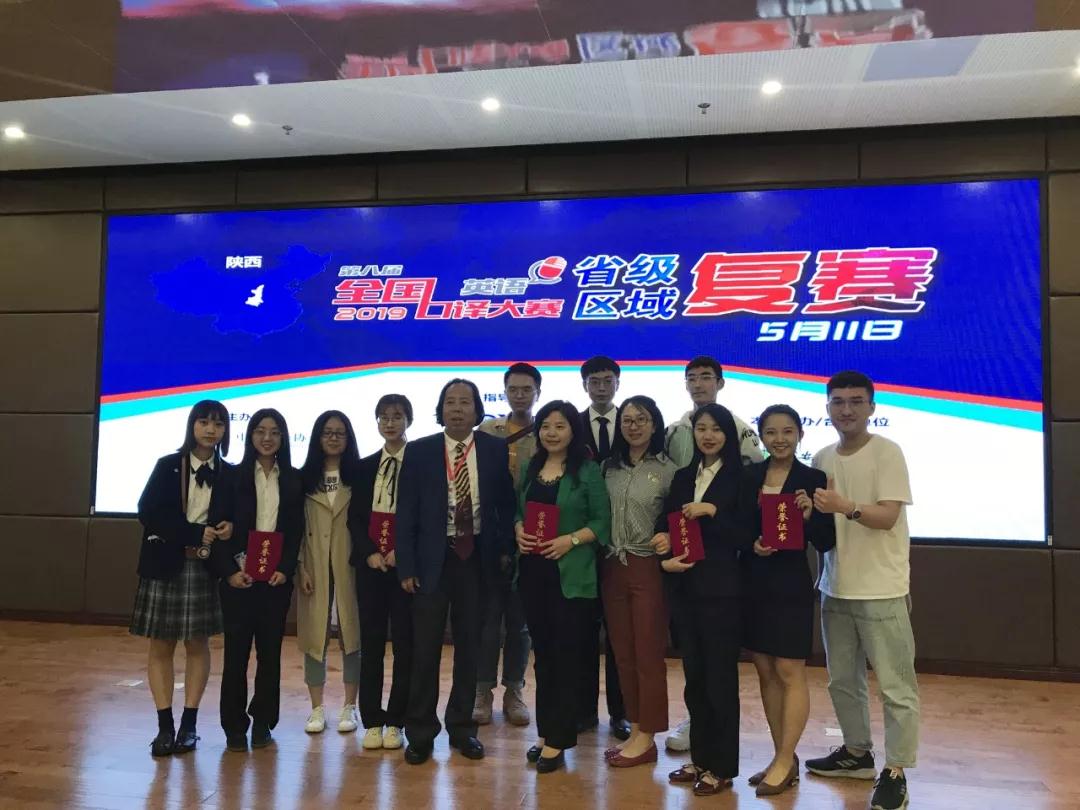 2019年5月11日第八届全国口译大赛陕西省级区域复赛在西安科技大学(临潼)顺利举行,我校共派出5名参赛队员3位指导教师参与大赛指导。在比赛中5名选手全部晋级决赛,其中一等奖1名,二等奖3名,三等奖1名,5位选手均进入前20强。苏蕊老师,田慧芳老师,王黎老师均获得优秀指导老师称号。从校选赛到此次省赛队员们做了大量的准备工作,多名队员自愿来到赛场,为选手们助力加油。