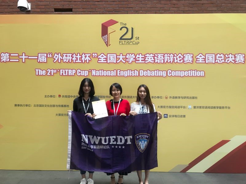 第二十一届“外研社杯”全国英语辩论赛全国总决赛于5月17至22日在北京外国语大学隆重举行。我院英语专业牟昶璇、白昕可两位同学经过激烈角逐,最终获得总决赛二等奖,我院教师赵丹晨获得优秀评委称号。