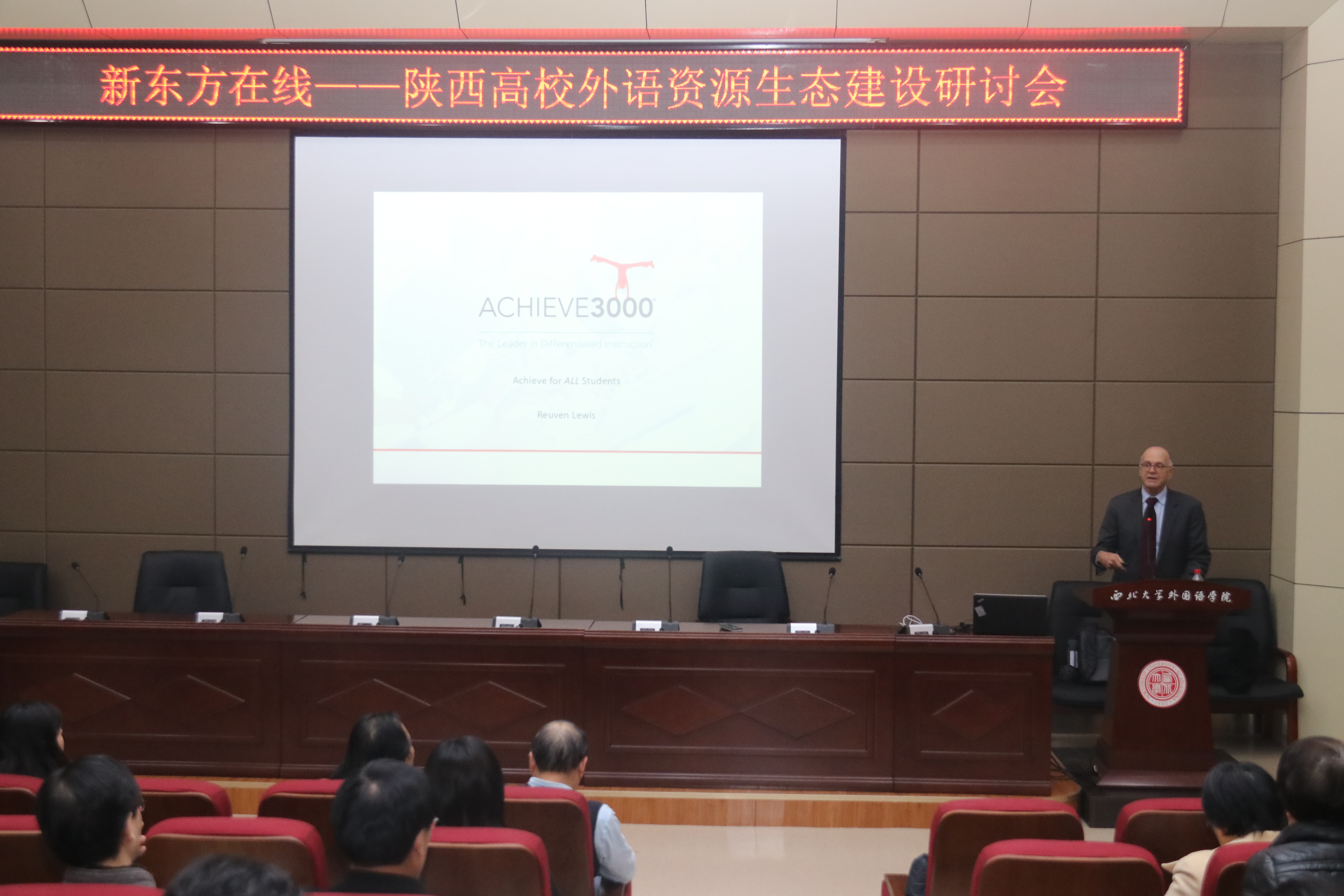 11月17日(周五)下午“陕西高校外语教学资源生态建设研讨会”在我院成功举办。学院邀请到陕西多所高校外语专业负责人前来交流,并邀请美国行业专家Jason Turner和Reuven Lewis进行分享,做了专题报告”Unitilizing Technology and the Lexile to Effectively Implement Differentiated Instruction and Accelerate Literacy in the Classroom”。专家向与会的陕西高校外语负责人和我院教师交流国际上该细分领域最新成果和科研方向,对新形势下如何利用网络资源为教学和科研服务提供了有益的启示。