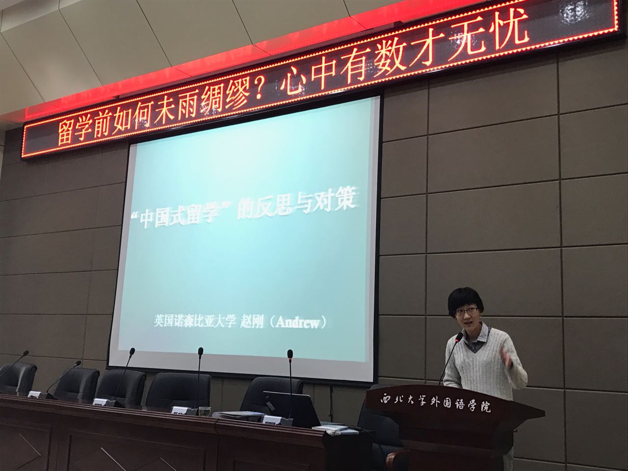 2017年11月8日下午,国际教育知名专家,英国诺森比亚大学中国区首席代表赵刚在外语第二课堂为师生做了题为“中国式留学”的反思与对策讲座。yl6809永利官网集团教学副院长曹若男出席并介绍了嘉宾。讲座中,赵刚老师用生动案例幽默风趣地向大家讲述了中国式留学存在的问题并鼓励在校大学生养成主动阅读、批判性思维的良好习惯以适应未来的留学生活。
