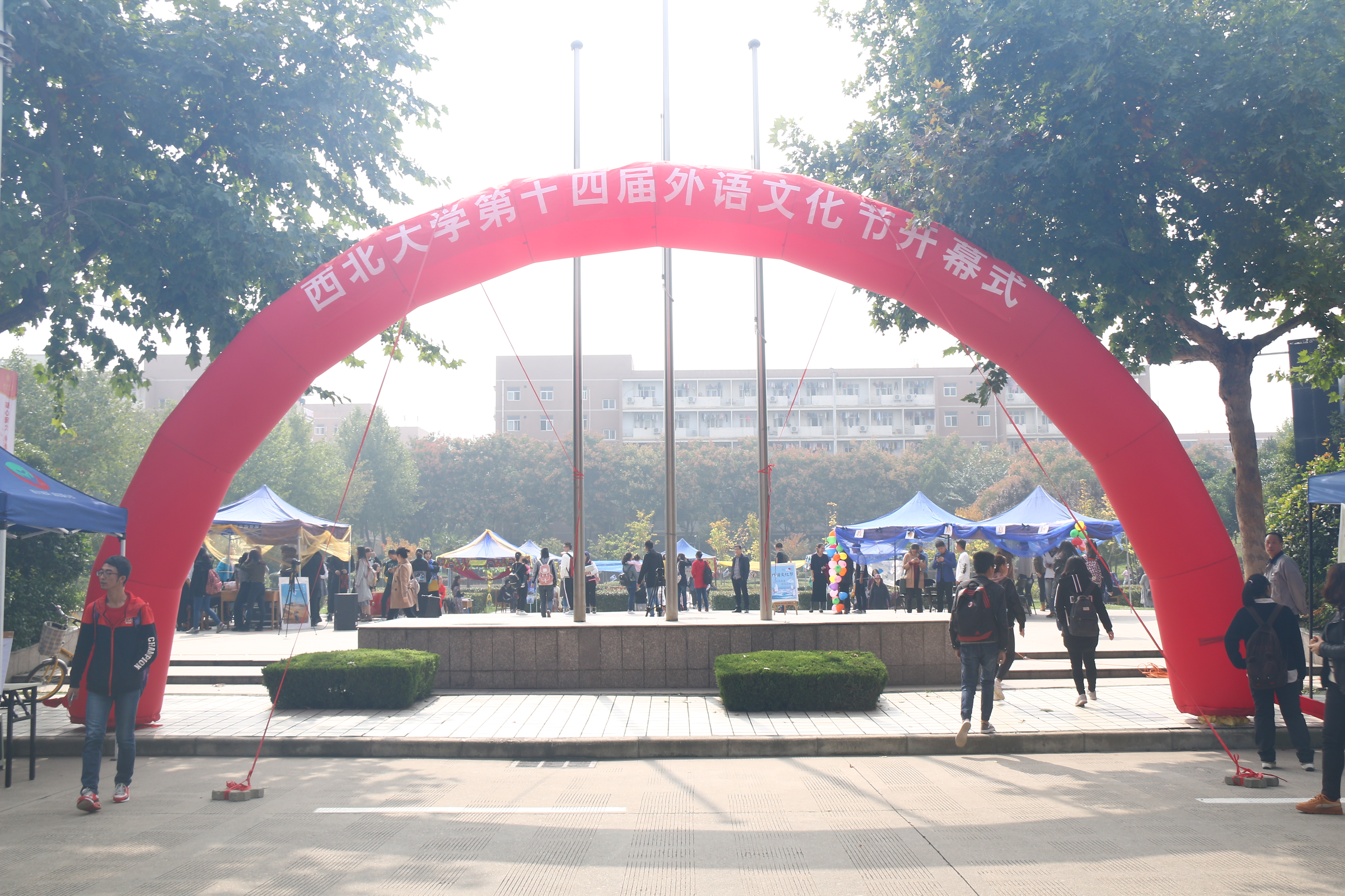 1019日,由院主办的第十四届外语文化节在长安校区音乐广场开幕。今年的外语文化节以“外辟新程,语联海陆”为主题,在开幕式中设置海上与陆上两条丝绸之路,连接中亚、土耳其、中国、印度、阿拉伯和非洲展区,通过可口的当地小吃、别致的精美礼品和极具魅力的歌舞表演,给全校师生呈现了一场无与伦比的丝路文化盛宴。