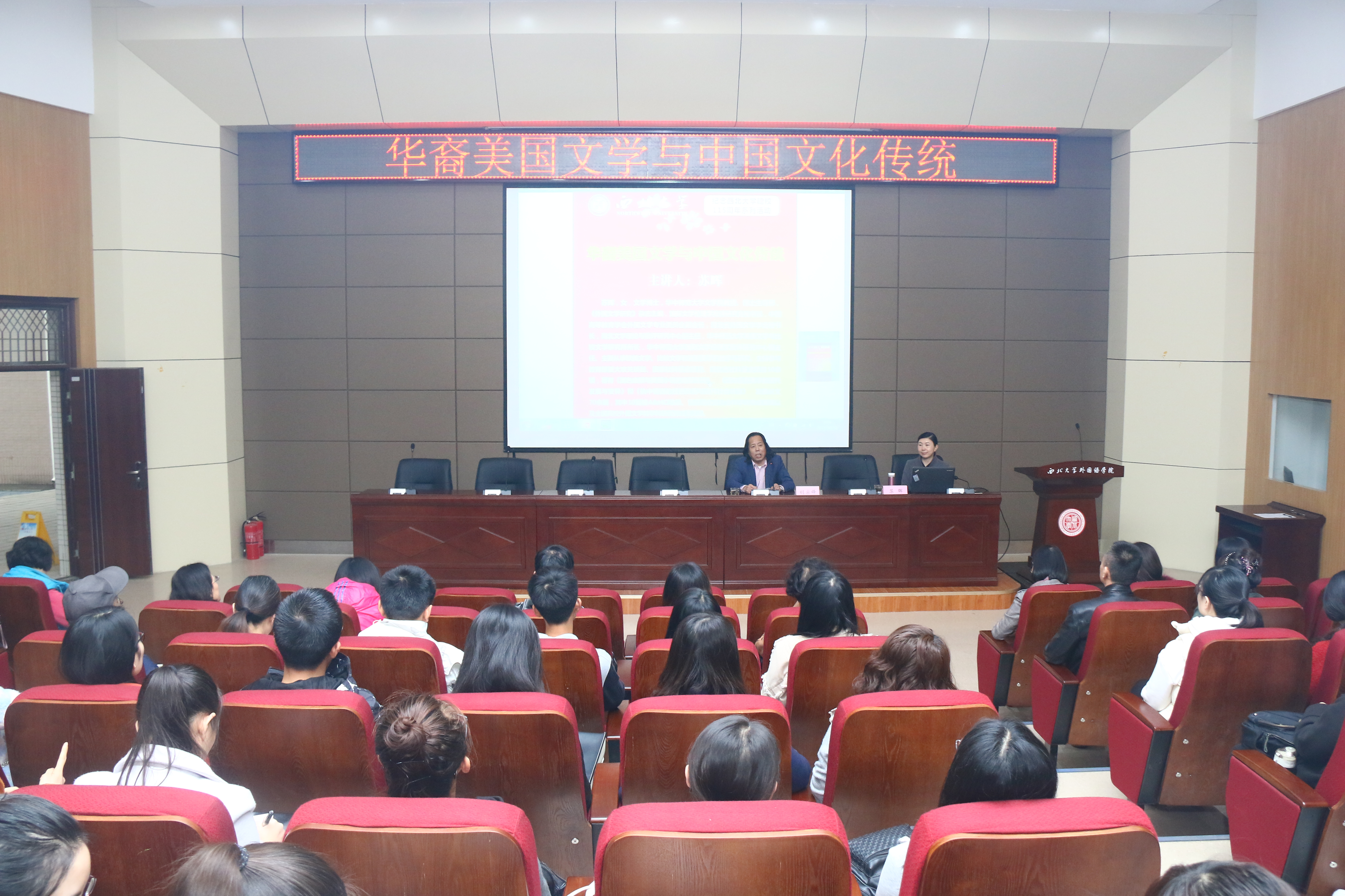2017年10月16日上午9点,苏晖教授莅临yl6809永利集团,为yl6809永利官网集团广大师生开展了一场以“华裔美国文学与中国传统文化”为题的讲座。讲座于当天在yl6809永利官网集团第二学术课堂举行,由yl6809永利官网集团院长胡宗锋教授主持。
